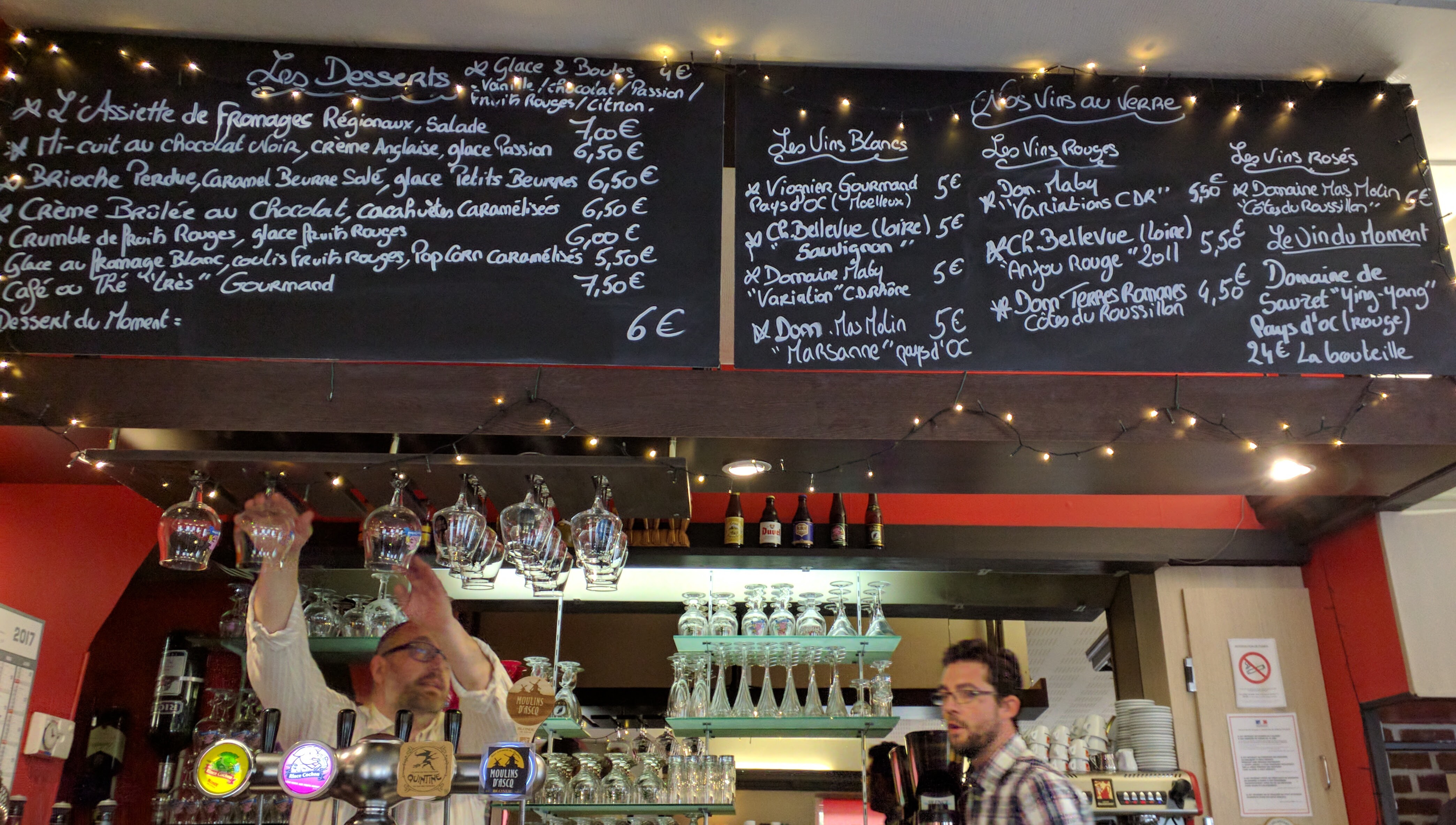 Posté le 01/10/2014 à 12:04"Meilleur rapport qualité prix que je connaisse. Plats maison de très bonne qualité, produits frais Bon choix de vin (avec conseils si nécessaire) Peu de choix de bière, mais le peu qu'il y a est bon (pressions : rince cochon, queue de charrue) plat, café et 2 bières (33cl) : environ 22 euros Attention : ils sont un peu victimes de leur succès et les places deviennent rares, pensez à réserver"