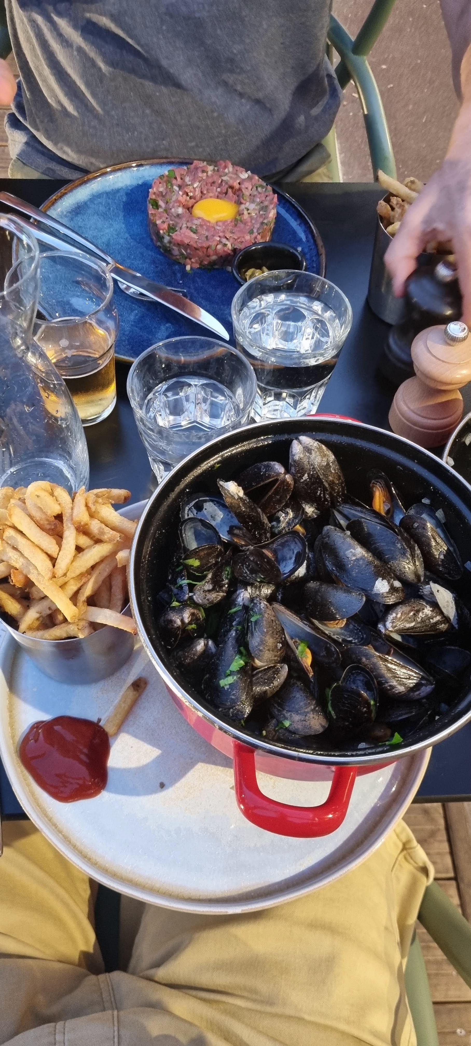 Lieu à la décoration sympa, personnel agréable et bons plats. Mention spéciale pour la crêpe suzette préparée sous nos yeux. Moules du jour très sympathiques et le burger a régalé ma femme et ma fille !