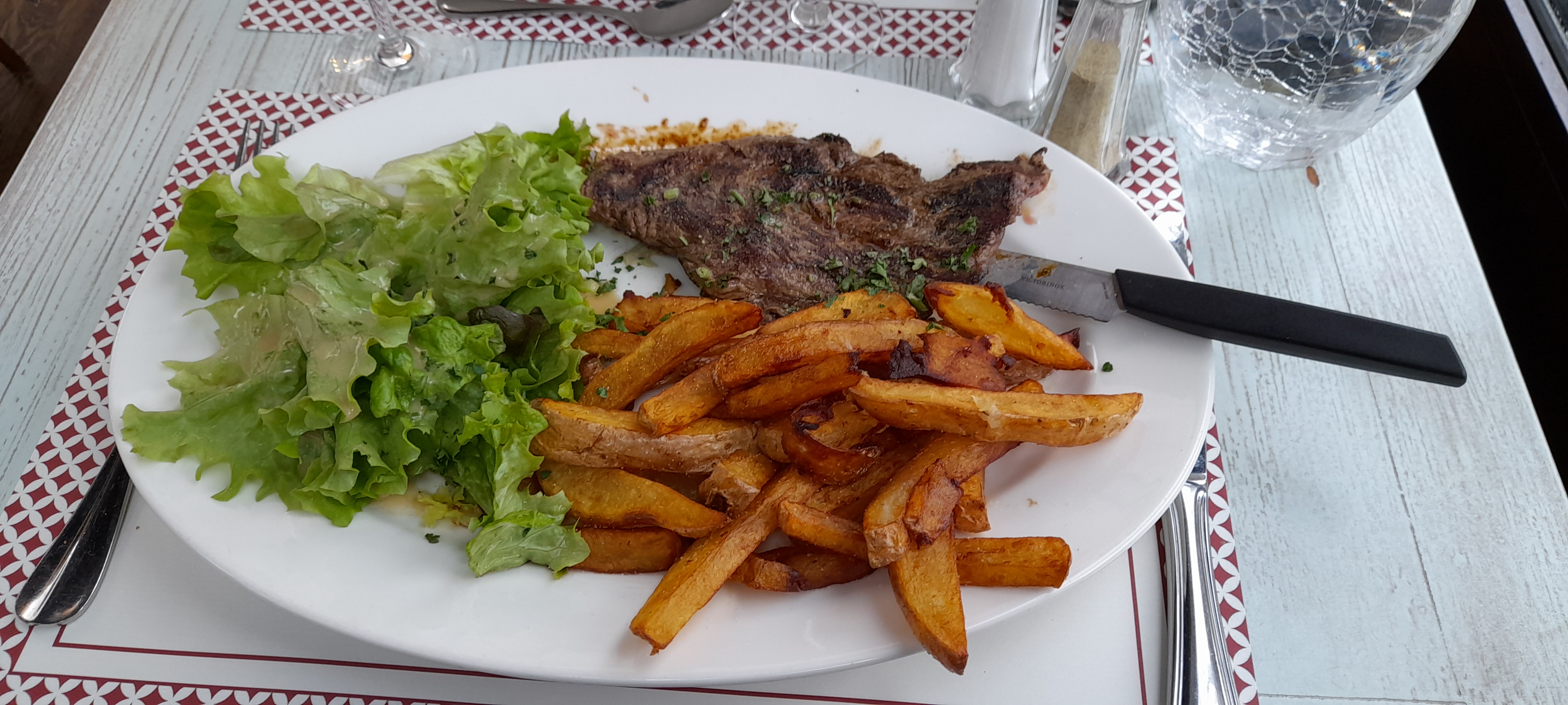 24€ pour une entrecôte inmangeable quelques frites et un mont de salade pour remplir l'assiette c'est le top ! Ce n'est pas le gras de la viande que je critique mais la nervosité bon ,notre chien était avec nous , lui a trouvé ça bon il fallait nous retourner l'assiette nous a t'on dit ! Si l'on va au resto manger ensemble et pas en décalé pas de geste commercial au paiement donc voilà mon avis deux jours après cet avis la gérante me dit a moi ! que j'avais commandé une cuisson a point ! quelle mauvaise fois en plus ! c'est un peu bas pour se défendre de mentir de telle sorte vous vous enfoncez brave dame
