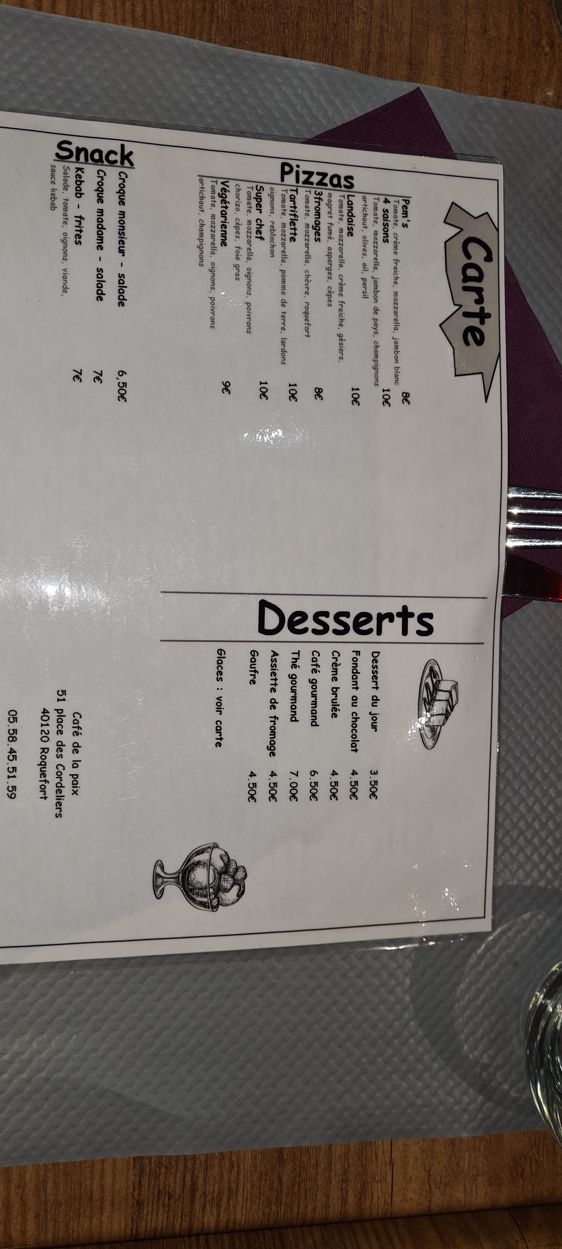 Voici toutes les informations sur le Restaurant français Café de la Paix restaurant qui ce trouve au 51 Pl. des Cordeliers, 40120 Roquefort (40). Sur cette fiche vous trouverez les photos, l'adresse, les horaires d'ouverture, le numero de téléphone et les avis clients.Vous pouvez églement rédiger un avis si vous le souhaitez en bas de page.