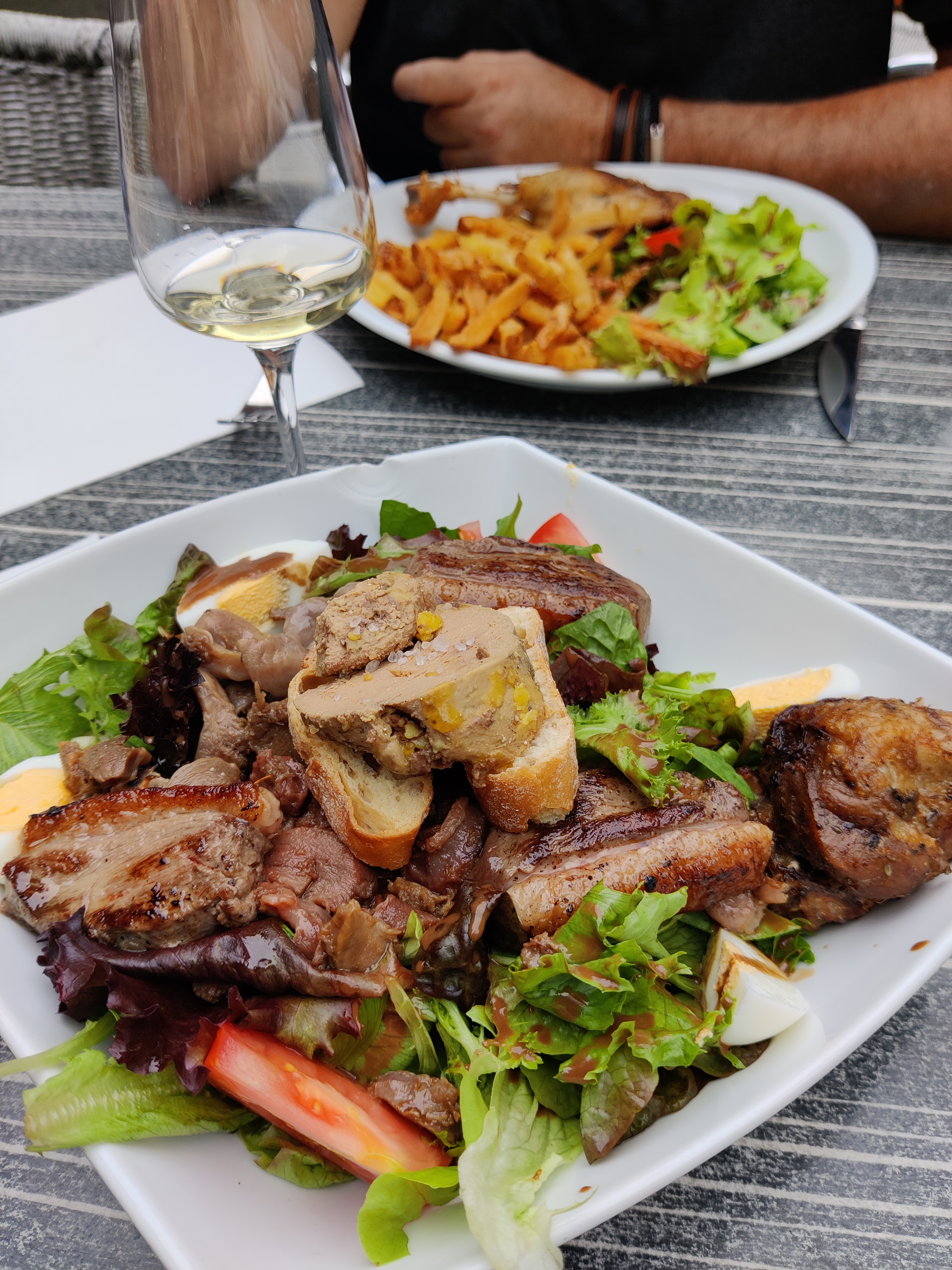 En arrivant, nous avons pris deux bières pressions (dont une Tigre Bock, j'ai renoué avec Kronembourg). Assis en terrasse, cadre très agréable, avec vue sur les anciens bâtiments qui bordent la rivière et le pont. Nous avons ensuite mangé le soir, un pavé et un camembert rôti, les deux étaient très bons. Les 5 étoiles sont dues au 2nd plat, une assiette (une planche) très bien garnie, absolument, un délice !