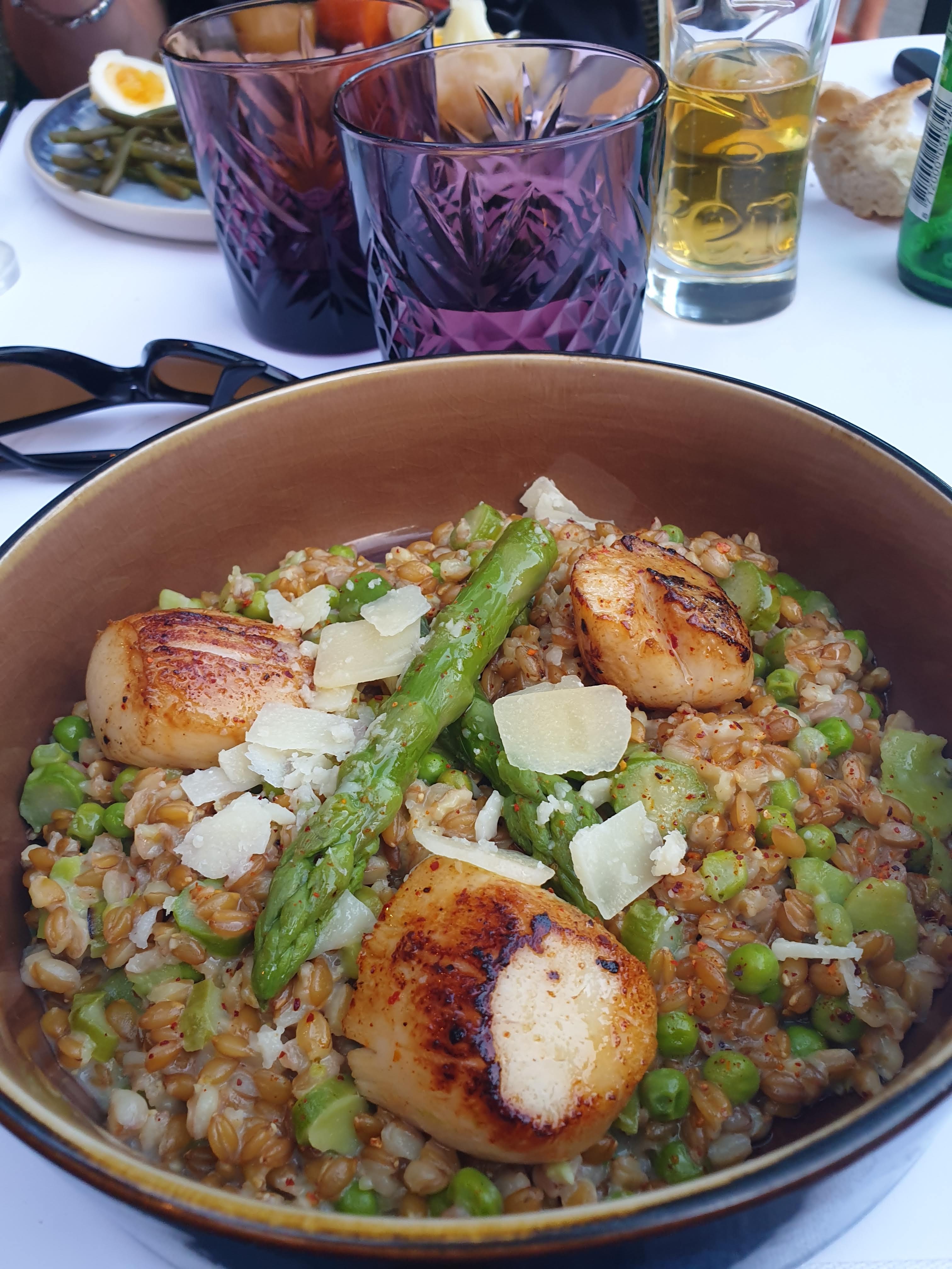 Oulala la déception. Nous sommes arrivés à 12h00 et sommes repartis à 14h30... et nous étions 2 seulement. Certes, la terrasse était blindée, mais on ne peut que constater le manque d'organisation du personne. Alors oui, le repas était bon (même le risotto n'en était pas un : du riz rond + chorizo + moule ne fait pas forcément un risotto). Serveurs débordés qui nous ont tout simplement oubliés (ce sont les mots de la patronne). Allez y si vous avez du temps ;) parce que le cadre, il faut bien l'admettre, est propice à la détente.