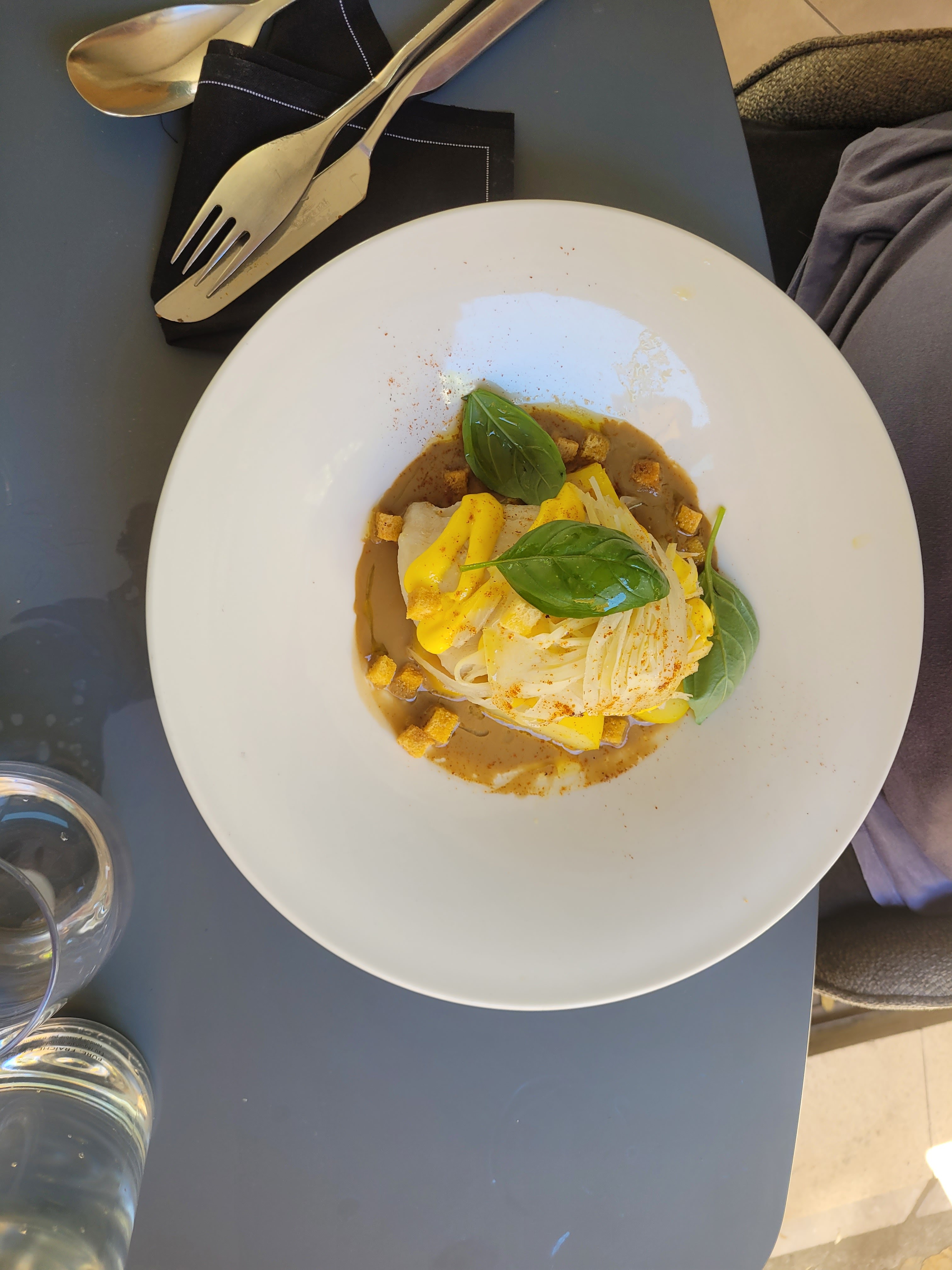 Lieu plein de charme, un accueil très aimable et pro,de belles saveurs dans des assiettes bien travaillées Dommage il pleuvait ,la terrasse avait l'air charmante Je ne laisse pas souvent d'avis mais ce restaurant est un réel coup de cœur