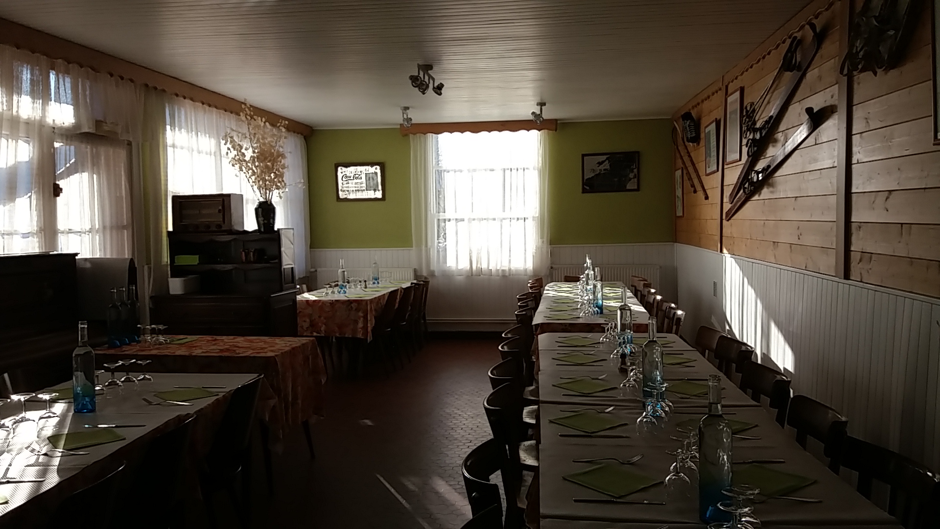 Petite salle chauffée par poêle à gaz, on se croirait dans un refuge. Accueil sympa. Restauration gastronomique classique. Prix corrects.