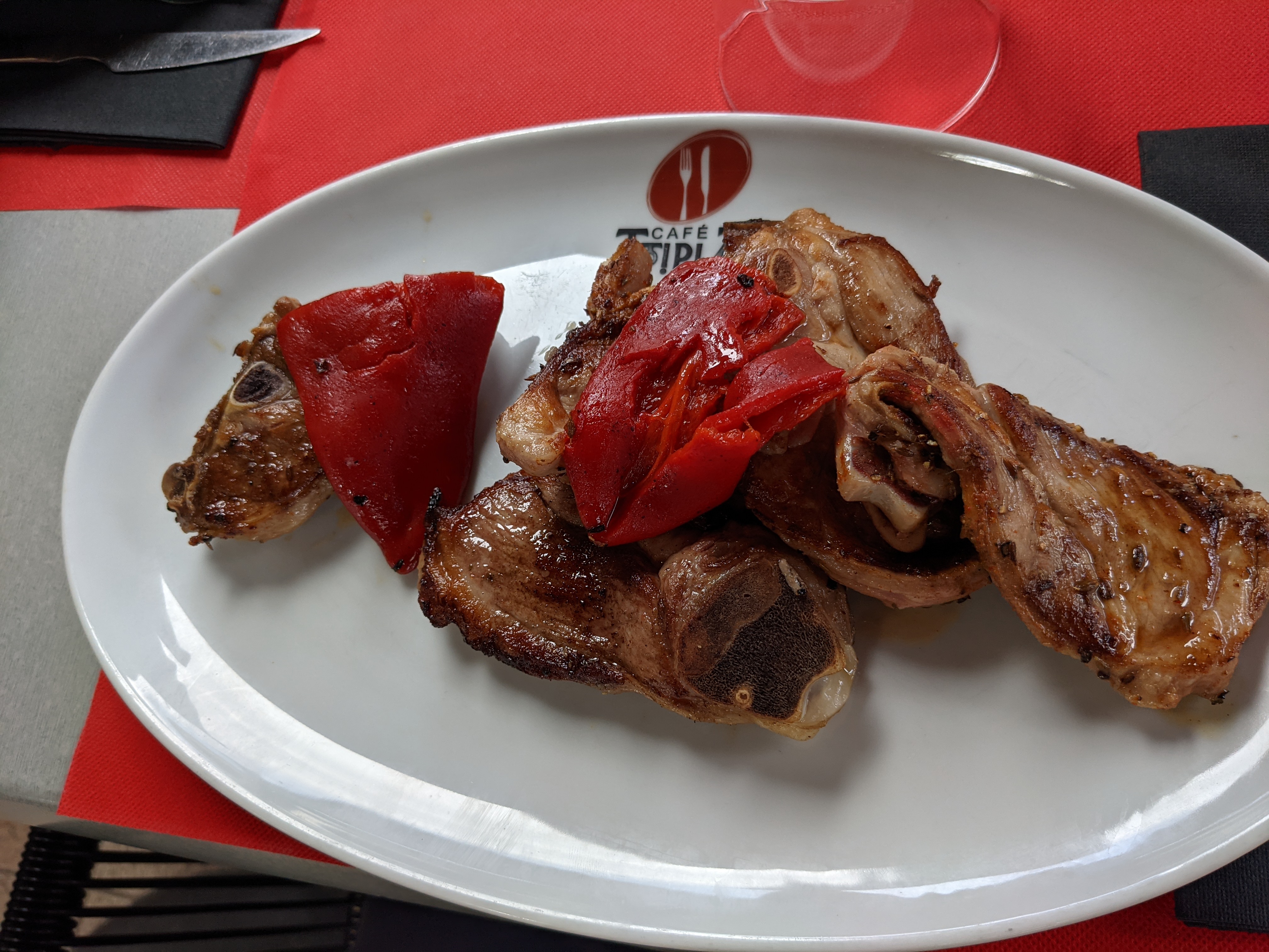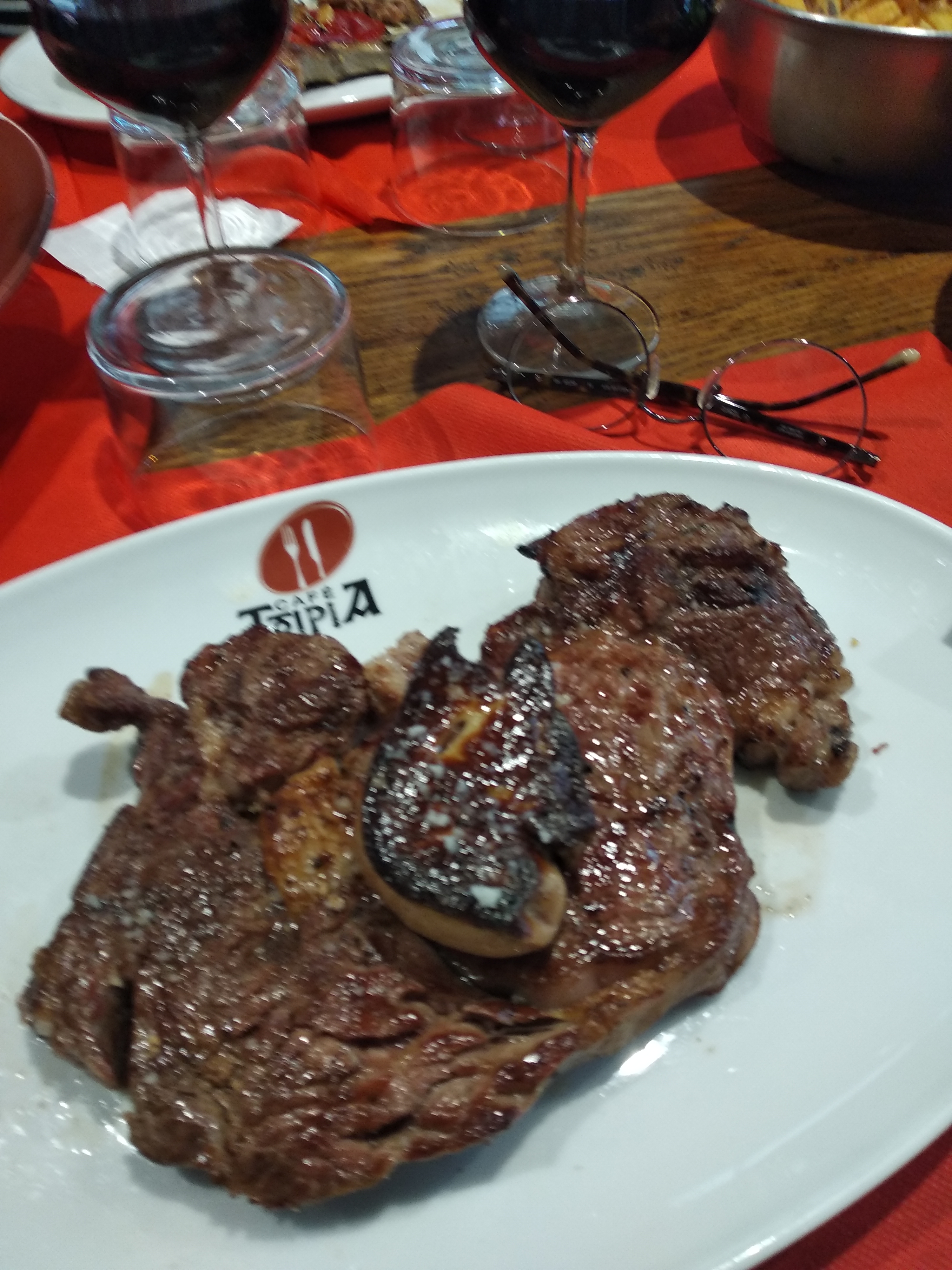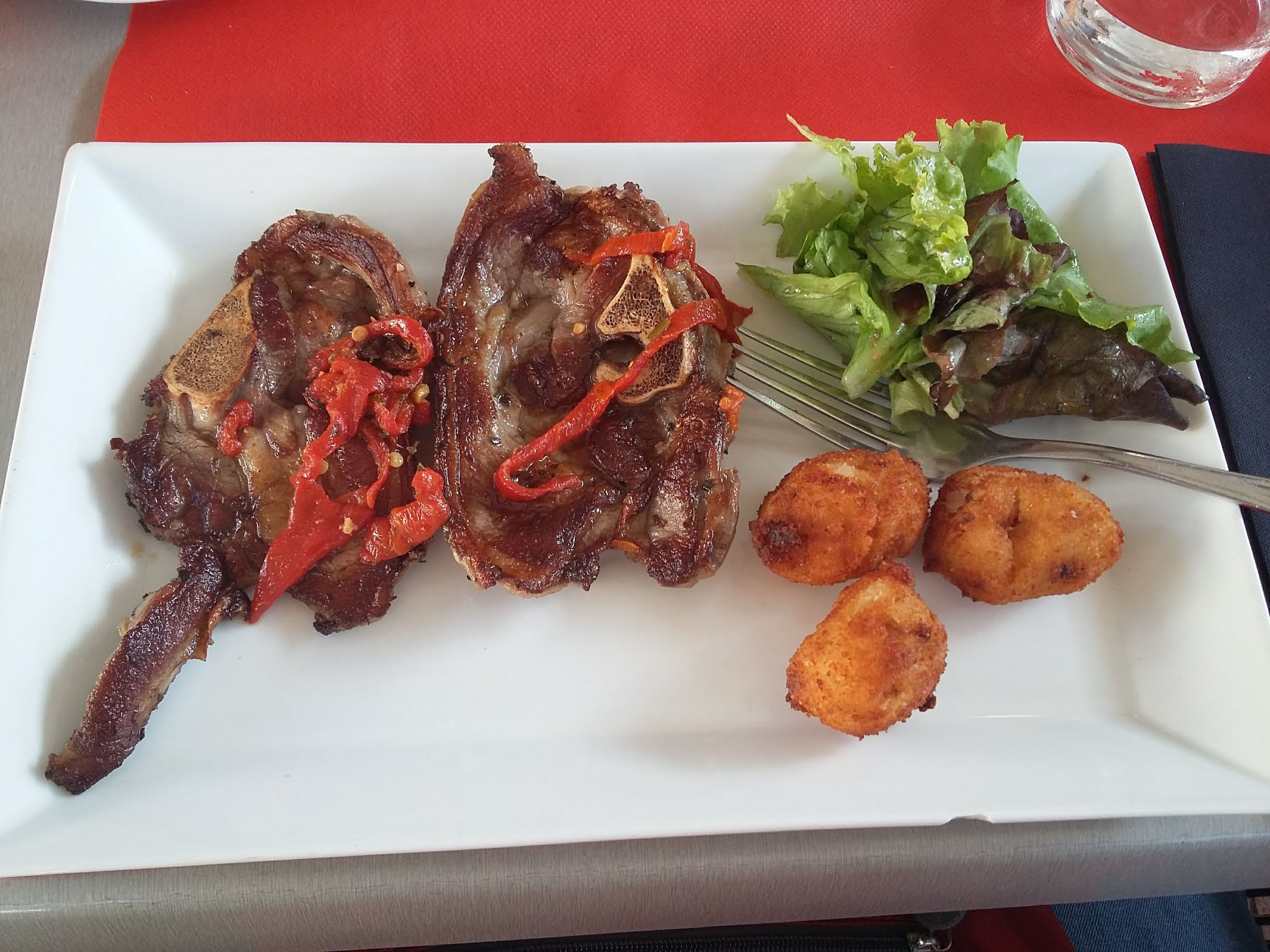 café tipia, st jean pied de port.. très bon resto a prix correct.. croquettes de morue et croquettes jambon-fromage, bonne. salade de chipiron grillée ,bonne. croustillant de pied de port confit, très bon fricassée de riz d agneaux aux champignons et pomme dauphine maison, excellent.. veau de lait crème champignon, très bon