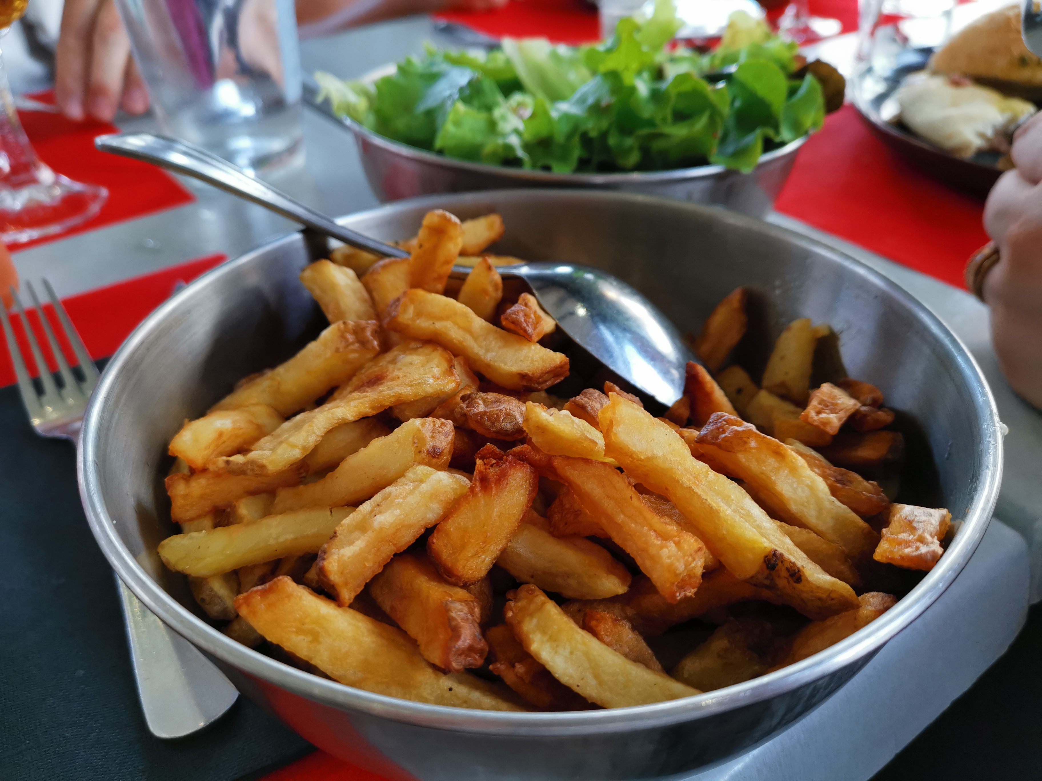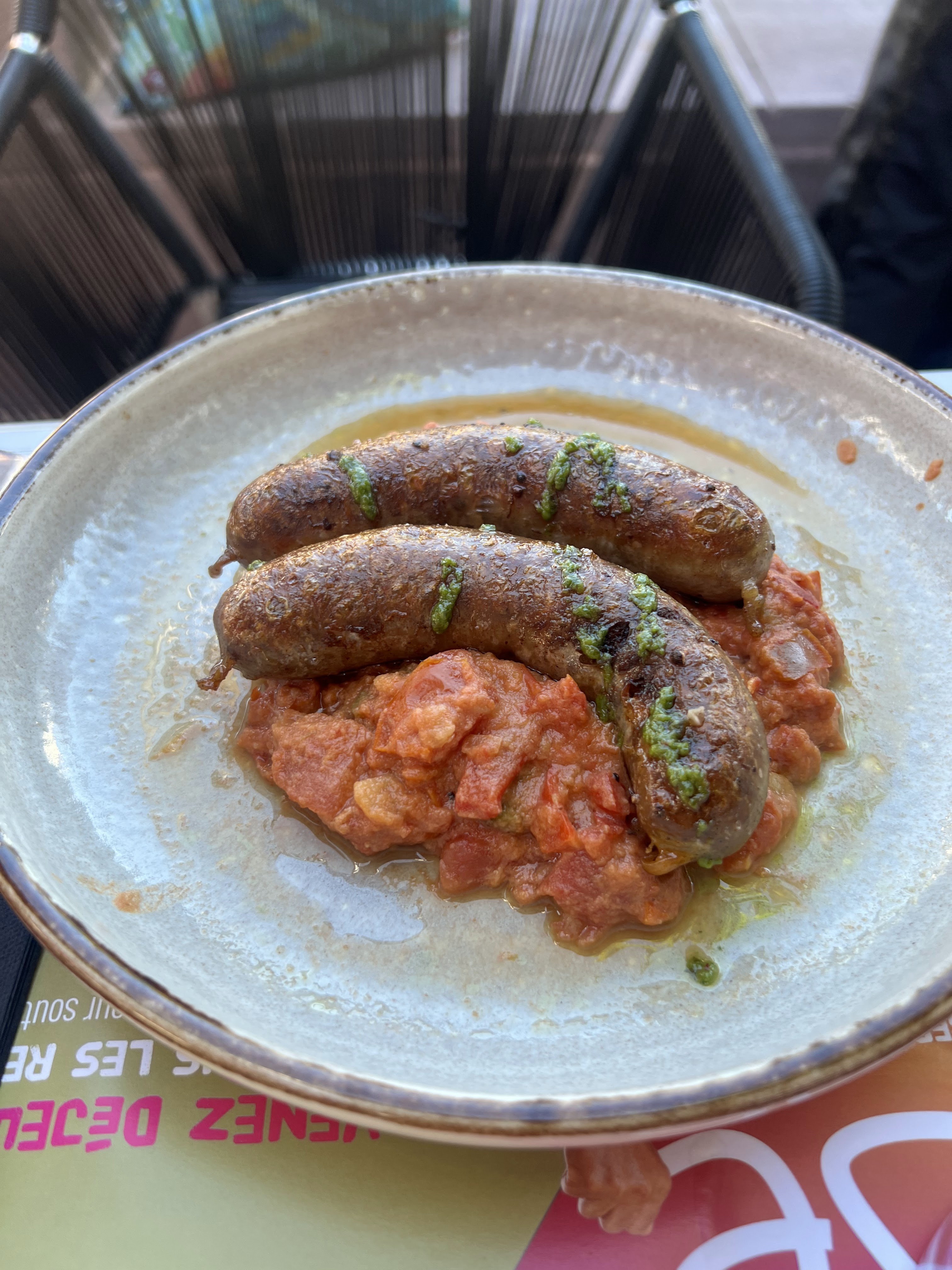 Nous avions commandé du ris d’agneau sauté (et braisé) et un croustillant de pied de porc désossé… enfin, des plats inhabituels que peu de restaurants proposent (Les légumes dans les assiettes avaient l’air bien frais): Des délices! Et la jeune serveuse est restée souriante du début à la fin malgré le monde. 👍🏻👍🏻 je recommande vivement.