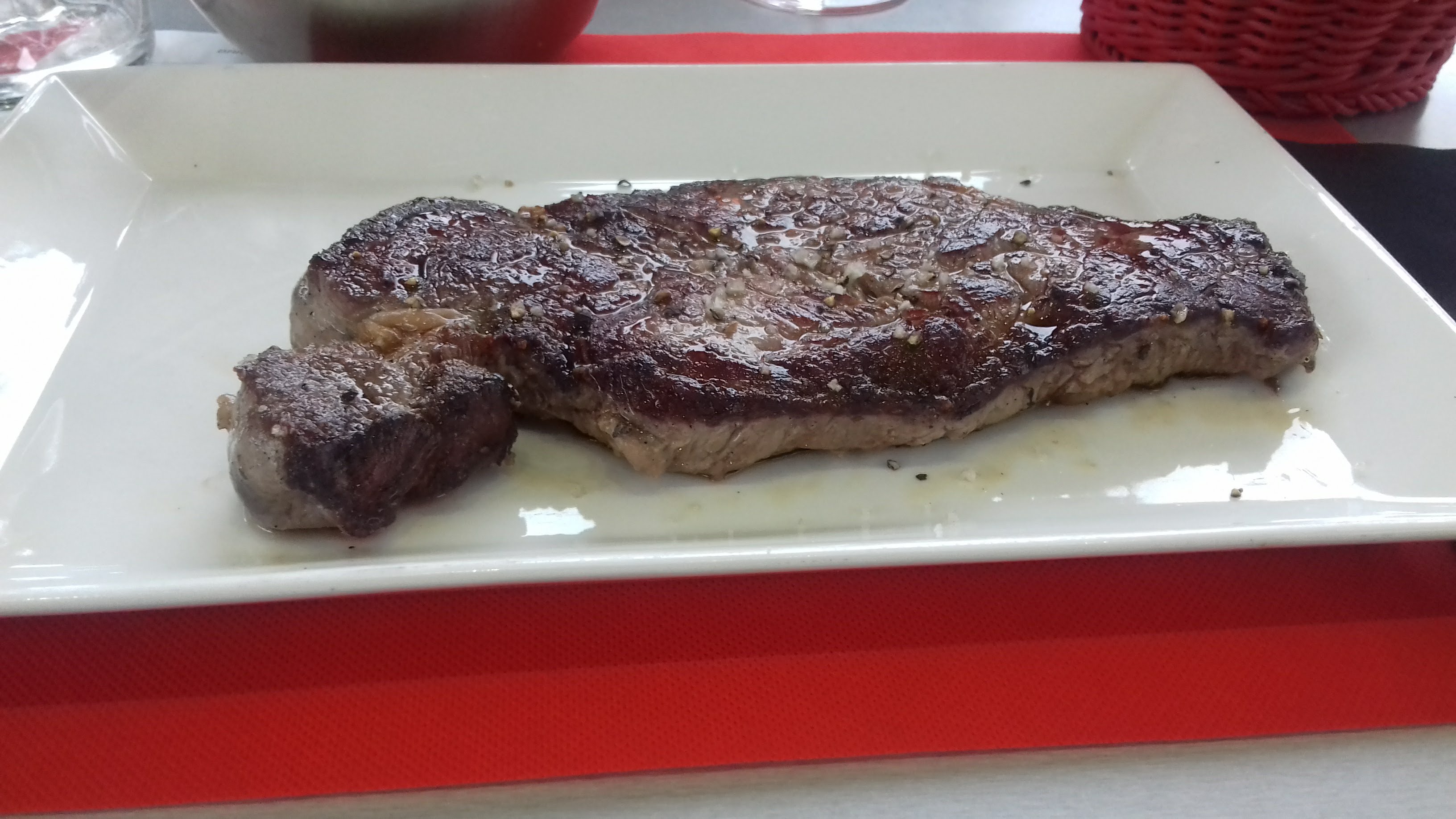 Entrecôte de très bonne qualité cuite au feu au top. Merci je me suis également régalée avec saucisses grillées piperade.