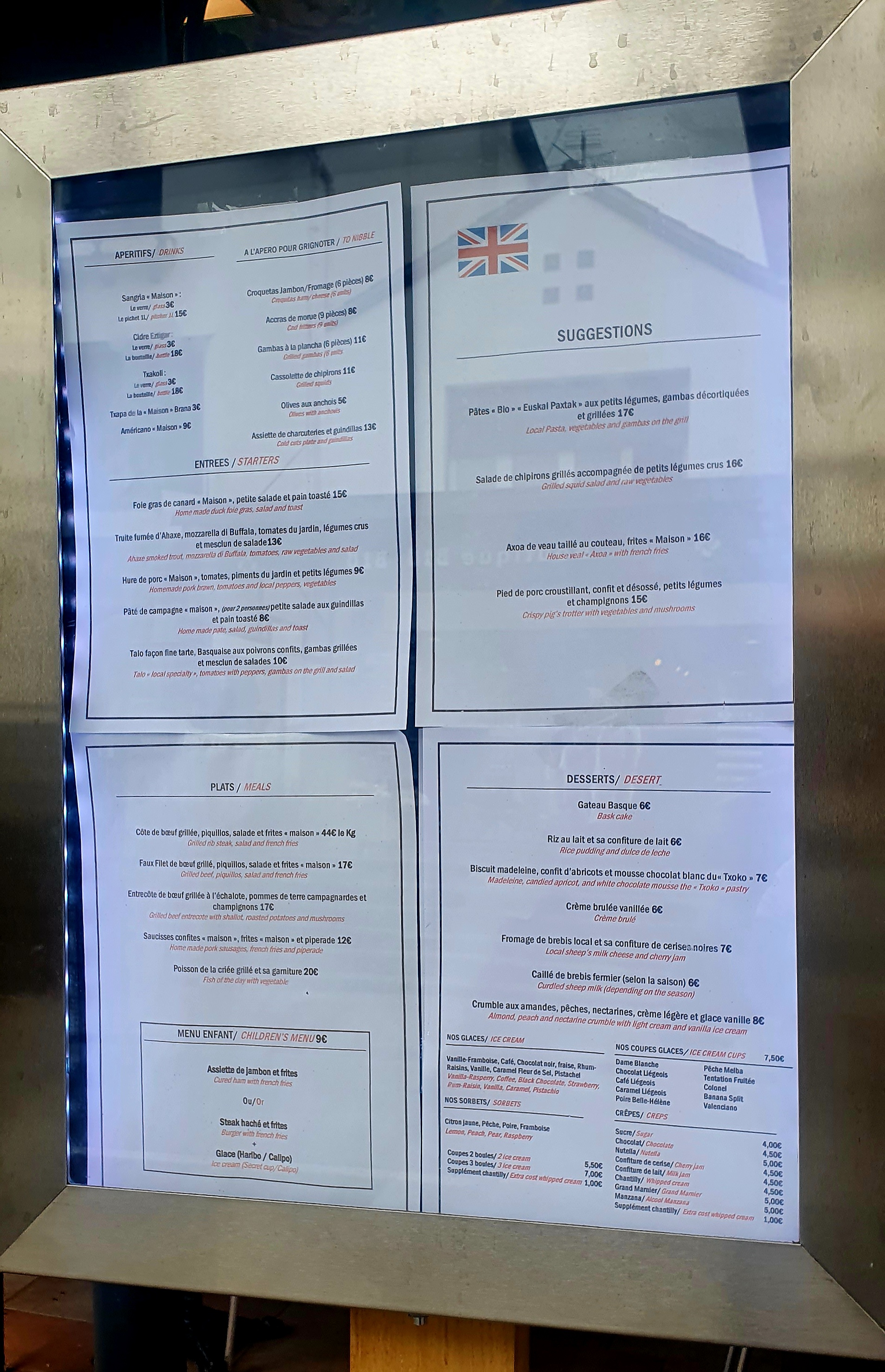Un accueil typique du pays Basque : Jovial, souriant, aimable. Une équipe dynamique qui est au top 👏 Une nourriture qui fait honneur à la région avec une superbe présentation. Des plats copieux 👌 Un cadre très agréable également. Que demander de plus ! Je recommande vivement 😁