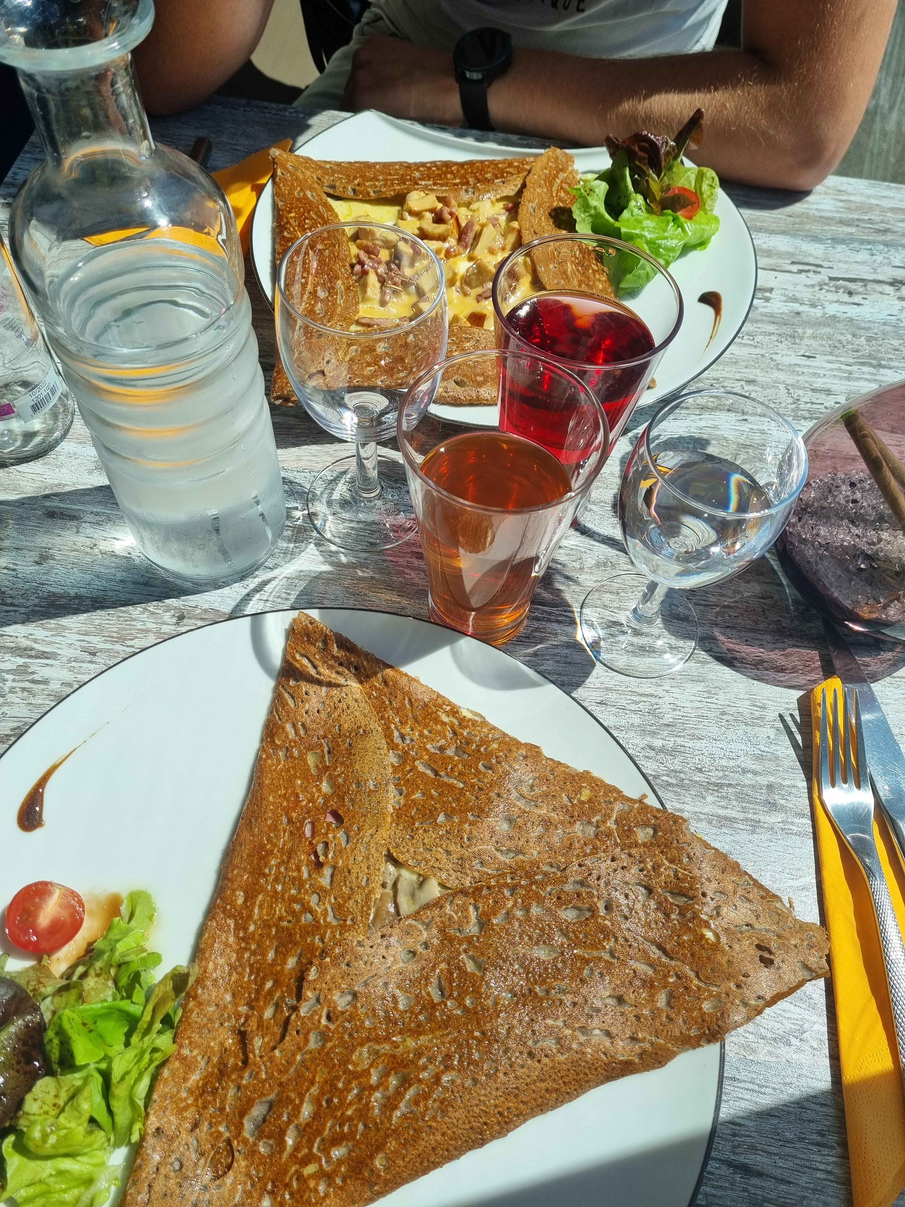 Des moules marinières revisitées , excellentes. Des galettes de blé noir bien garnies. Des crêpes froment au caramel au beurre salé ou au chocolat . Le tout maison et très bon pour un prix correct. Et une bonne bière houblonnée. Un bon choix pour une pause déjeuner