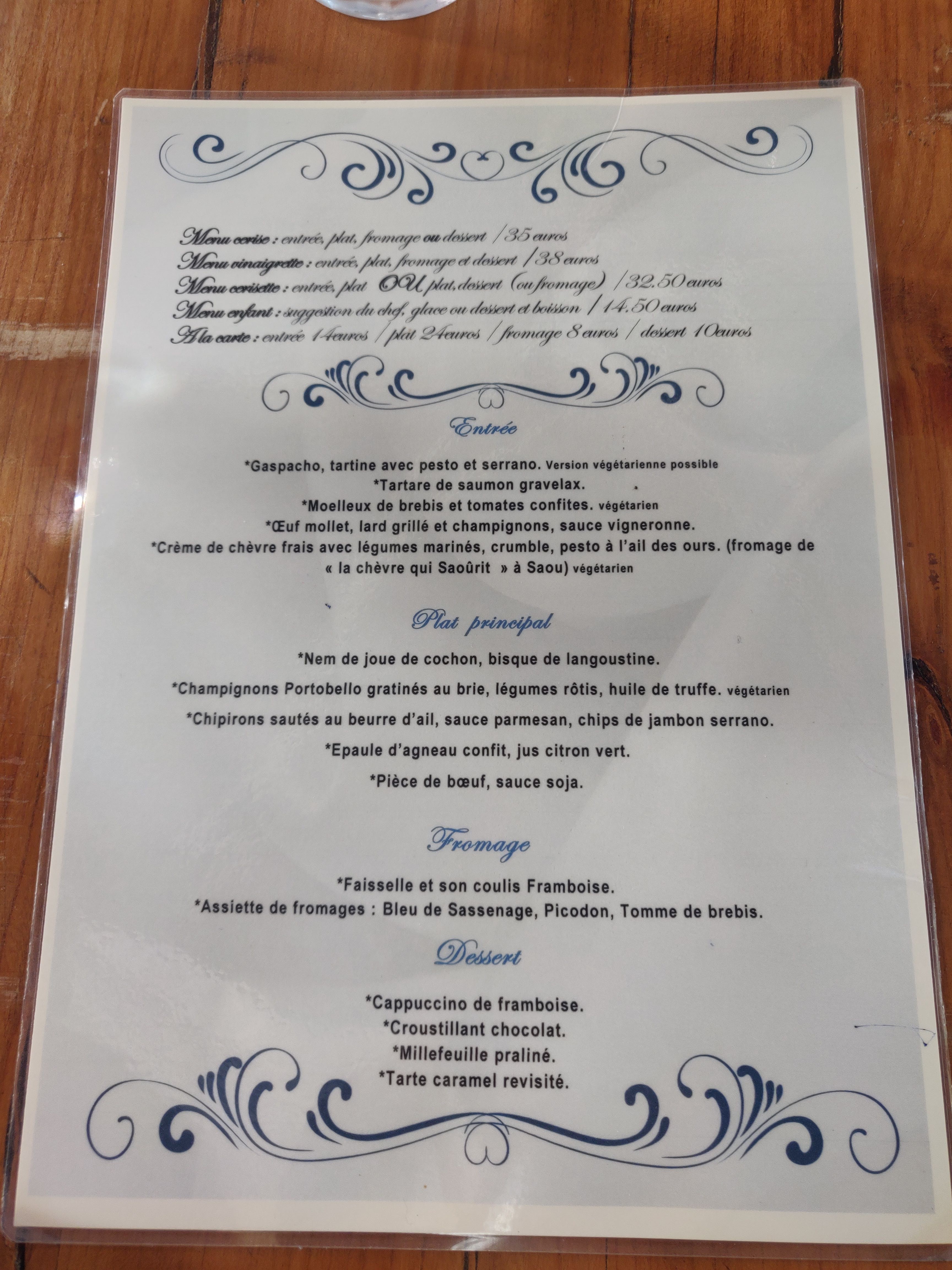 Posté le 04/04/2024 à 21:13"Très bonne ambiance, lieu sympa et très bon rapport qualité prix ! Merci à toute l'équipe pour votre accueil nous nous sommes régalés ! Vous pouvez vous rendre chez Cerise et Vinaigrette les yeux fermés"
