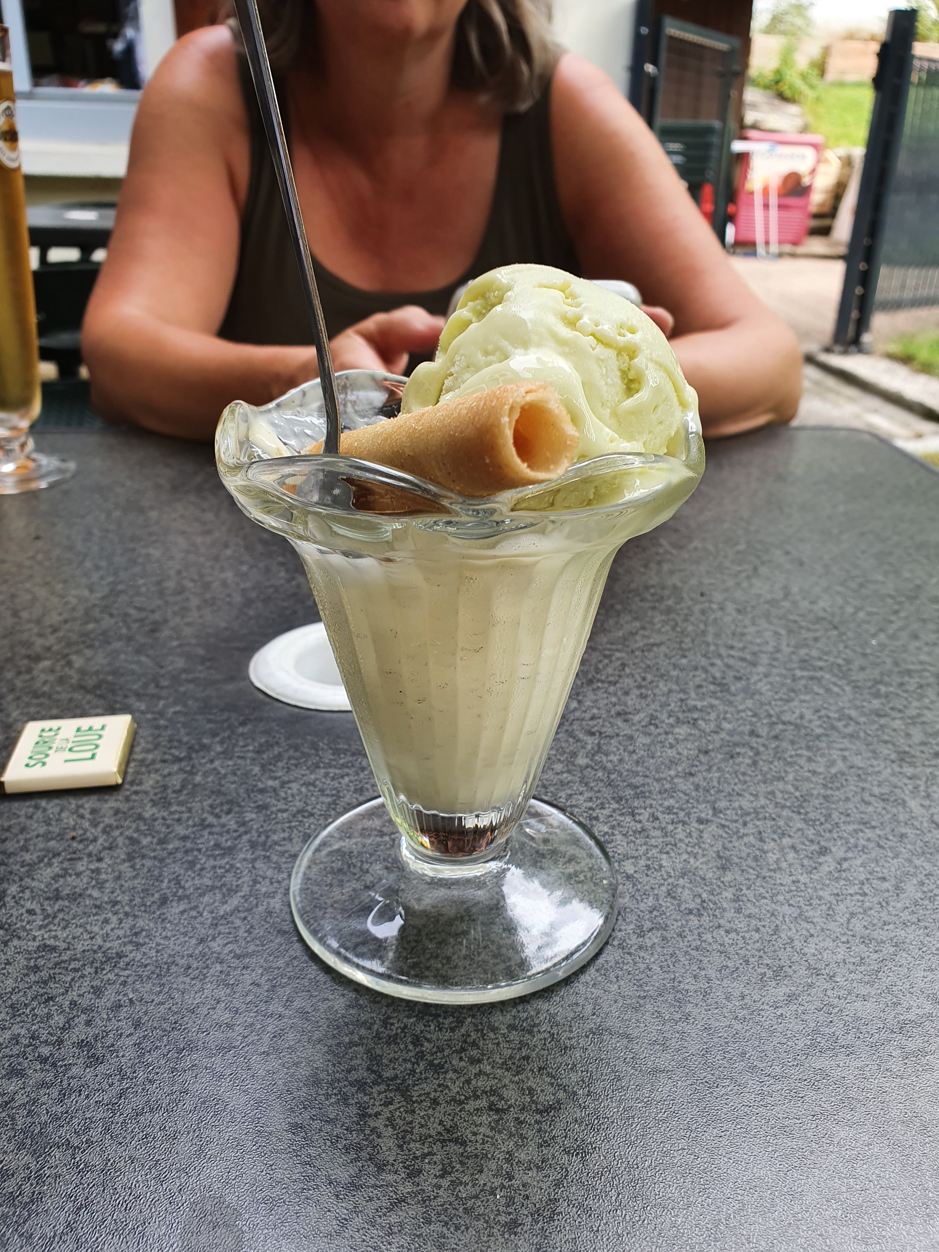 Avons passé un agréable moment à déguster d'excellentes glaces fabriquées par un fermier de la région.
