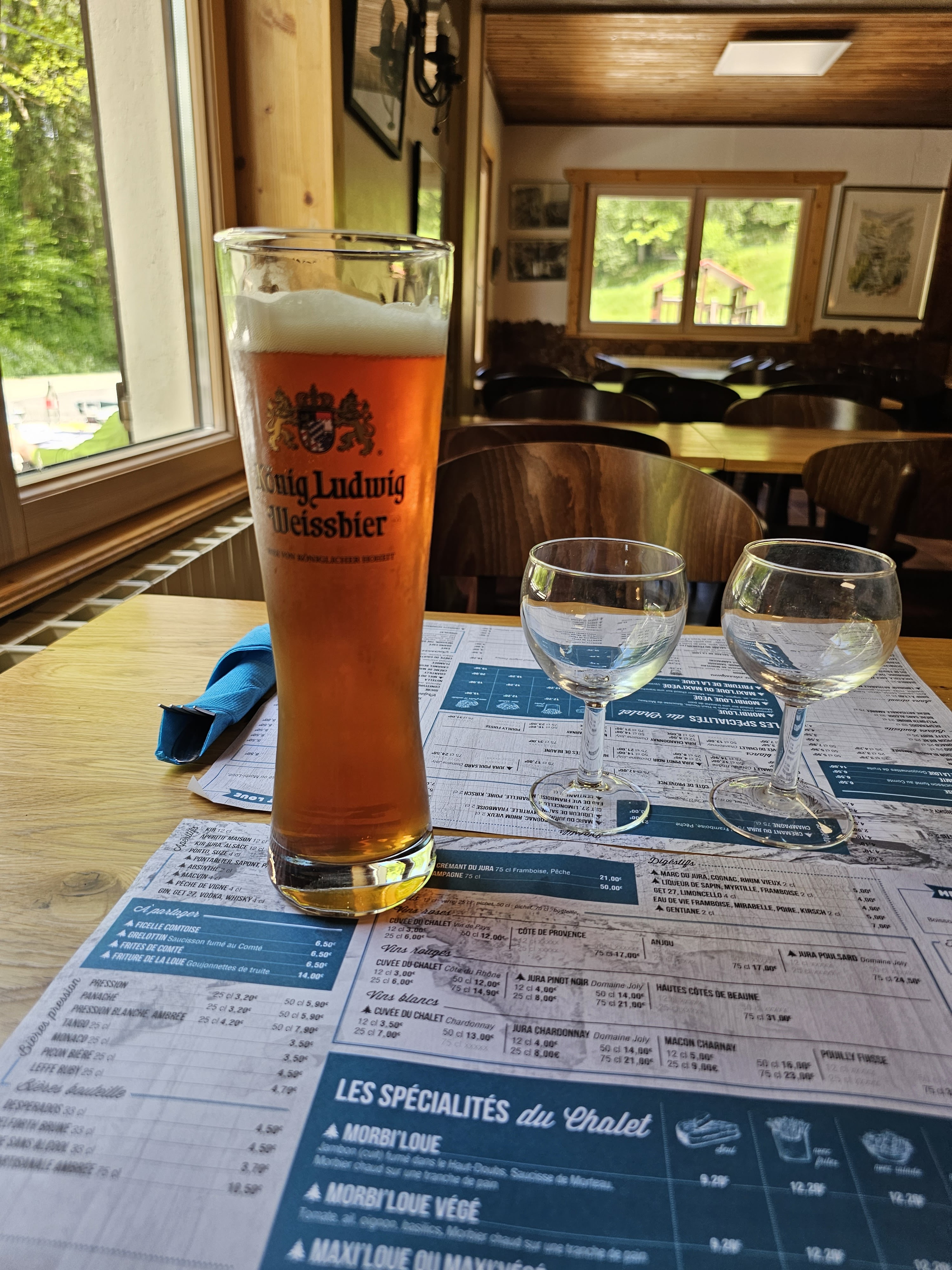 L apéritif nous à été servi en même temps que les morbiloue (sur le même plateau). Ça aurait été du vin ok, mais là c était des pontarlier et un sapon... pas vraiment une boisson pour accompagner un plat.