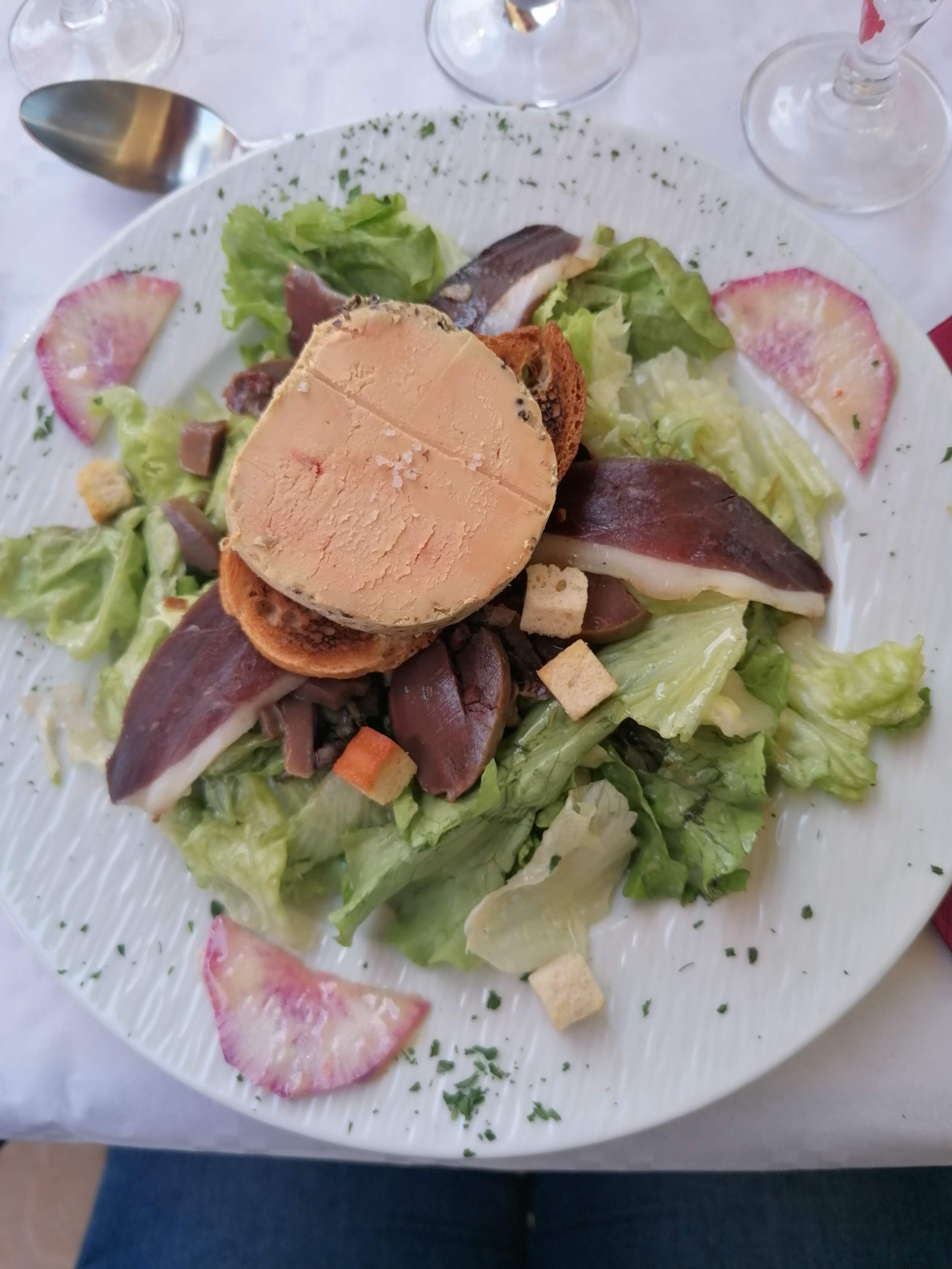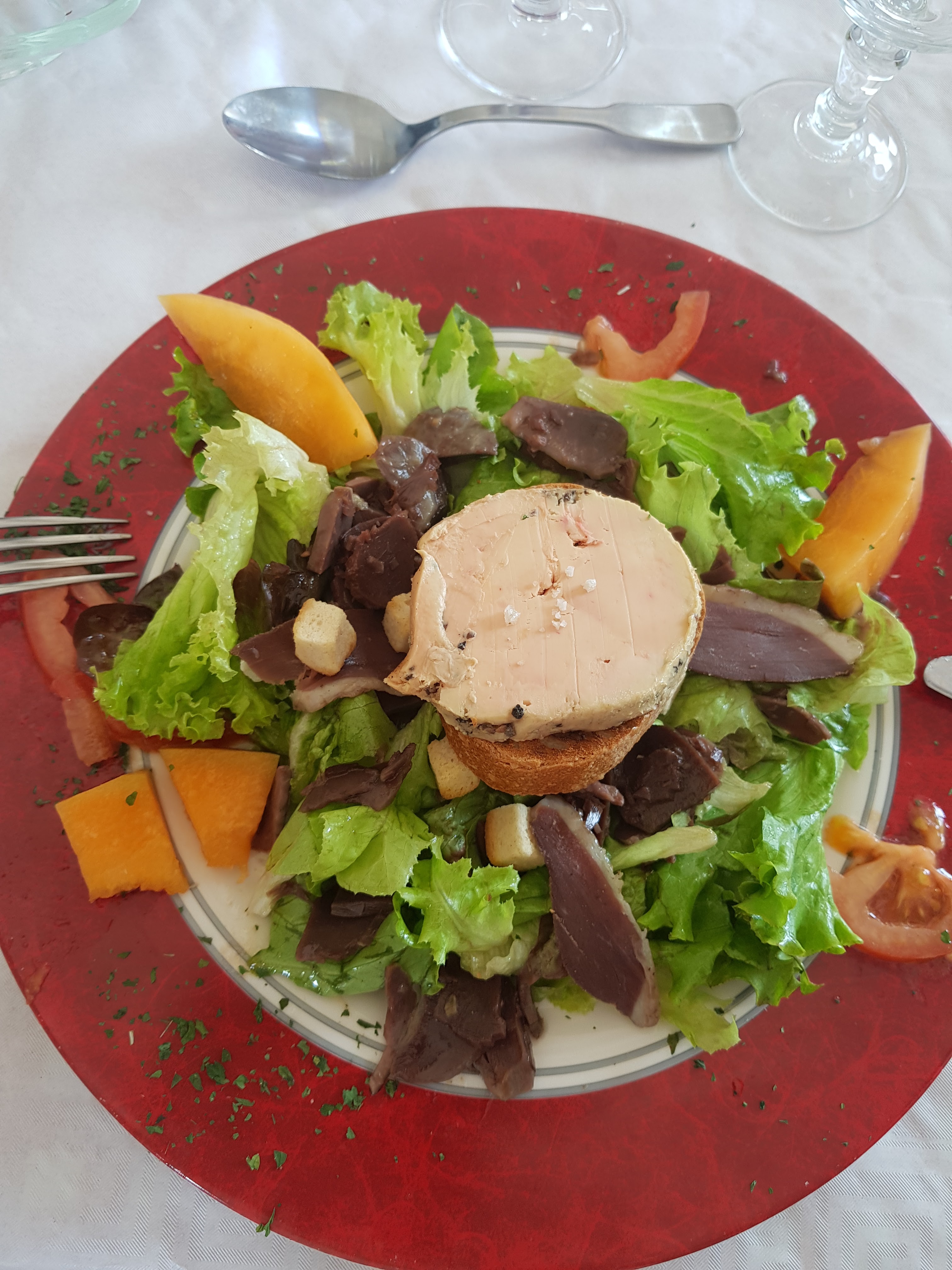 Posté le 10/05/2023 à 13:47"Salade gascon + aiguillettes de canard+ cèpes au chocolat super bon bon accueil"