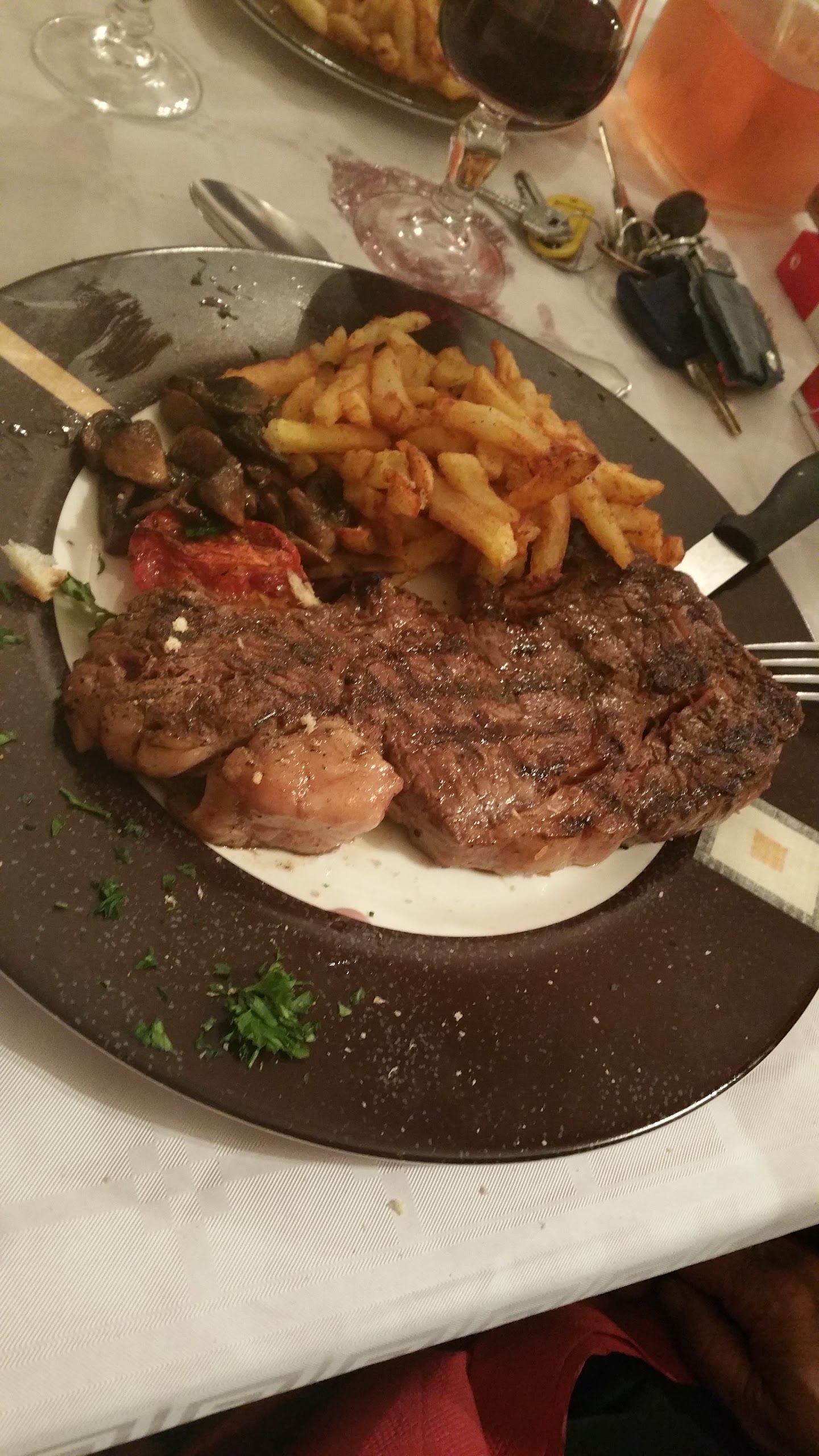 Posté le 28/09/2018 à 21:34"très cher pour une salade gésier avec suplement de 5€ pour une petite tranche de fois gras ; une entrecôte apaise cote gras mince côte (tendre} la mienne juste mangeable sup 2 € ; une tranche de glace ; note 28€"