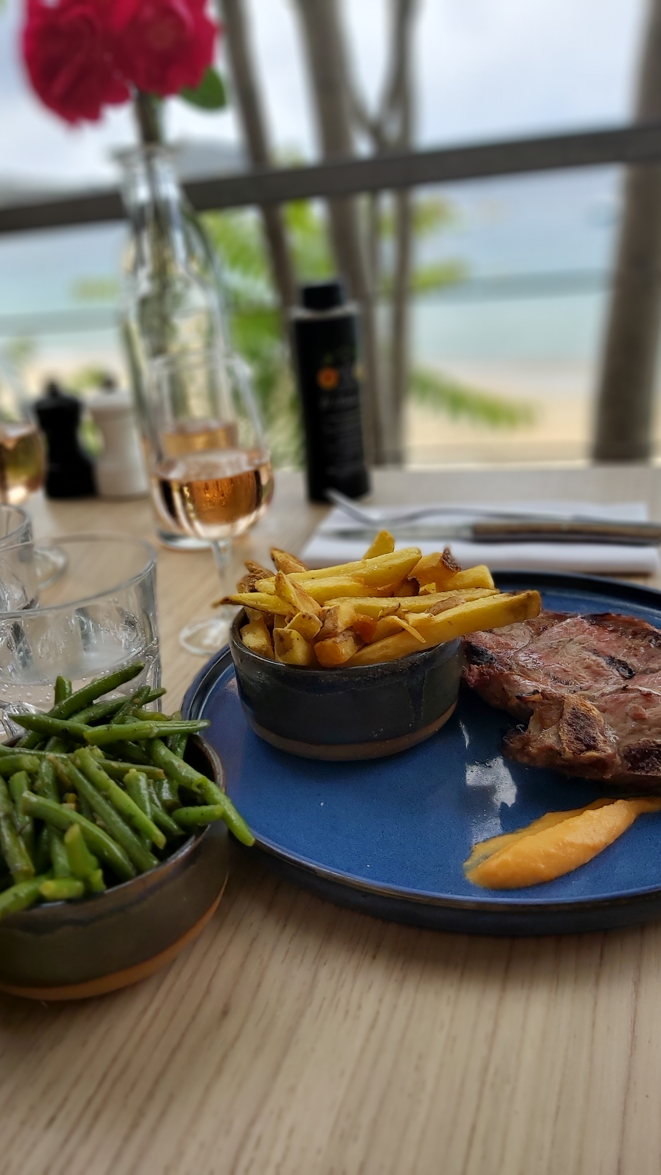 Un restaurant absolument splendide: une vue imprenable sur la plage, des plats d’une rare qualité, et un service impeccable. Les serveurs sont très à l’écoute et n’hésitent pas à vous conseiller. Je recommande ce resto qui est une véritable perle!