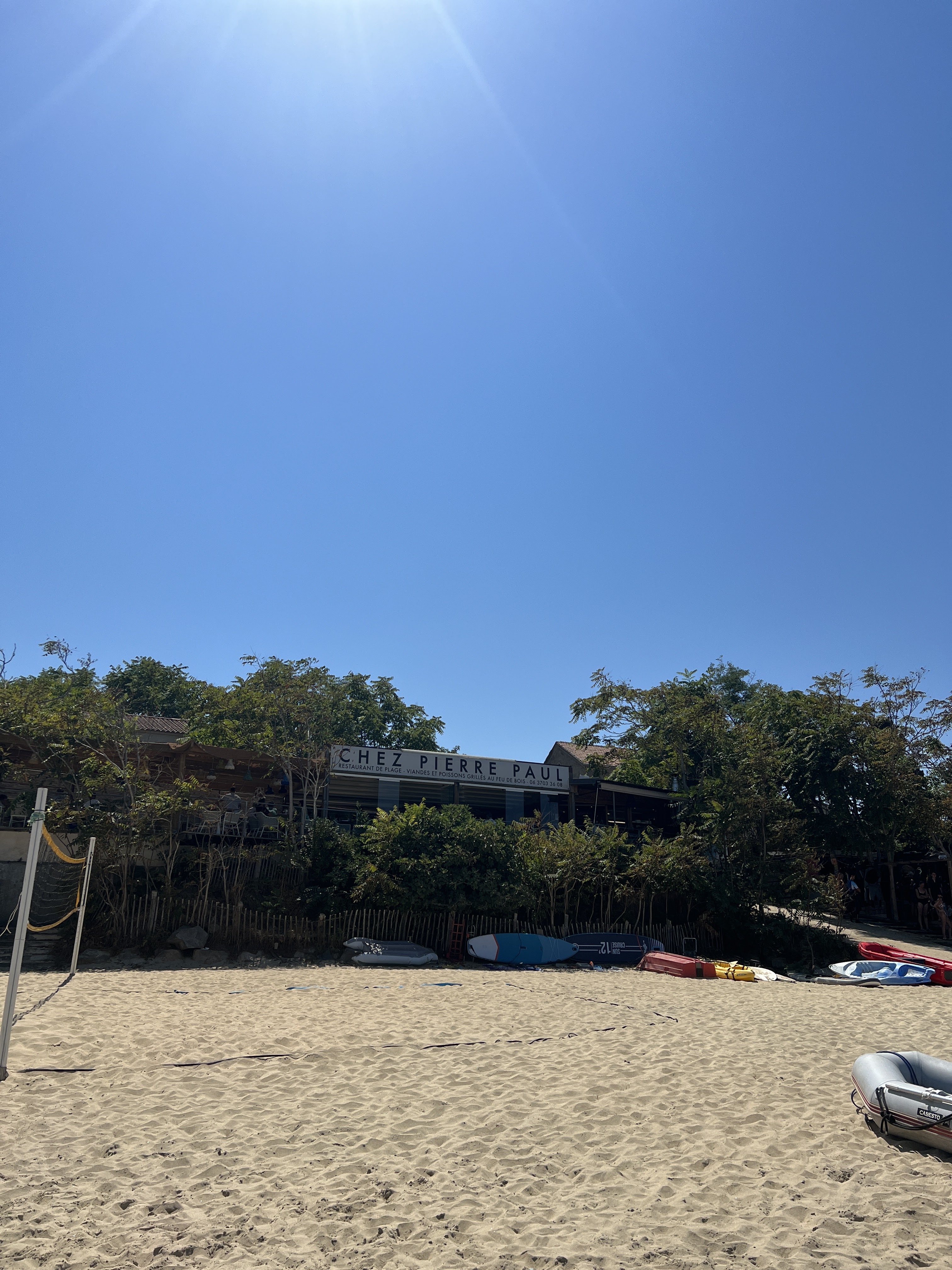 Enfin une vraie paillote Chez Pierre Paul il faut impérativement réserver mais quel délice de la cuisine authentique une carte ressérée, gage de fraîcheur. Nous avons opté pour une fricassée poulpe encornets figatelle chorizo avec un riz noir cuit à la perfection. Et le cadre vaut le coup d’œil. Je recommande vivement