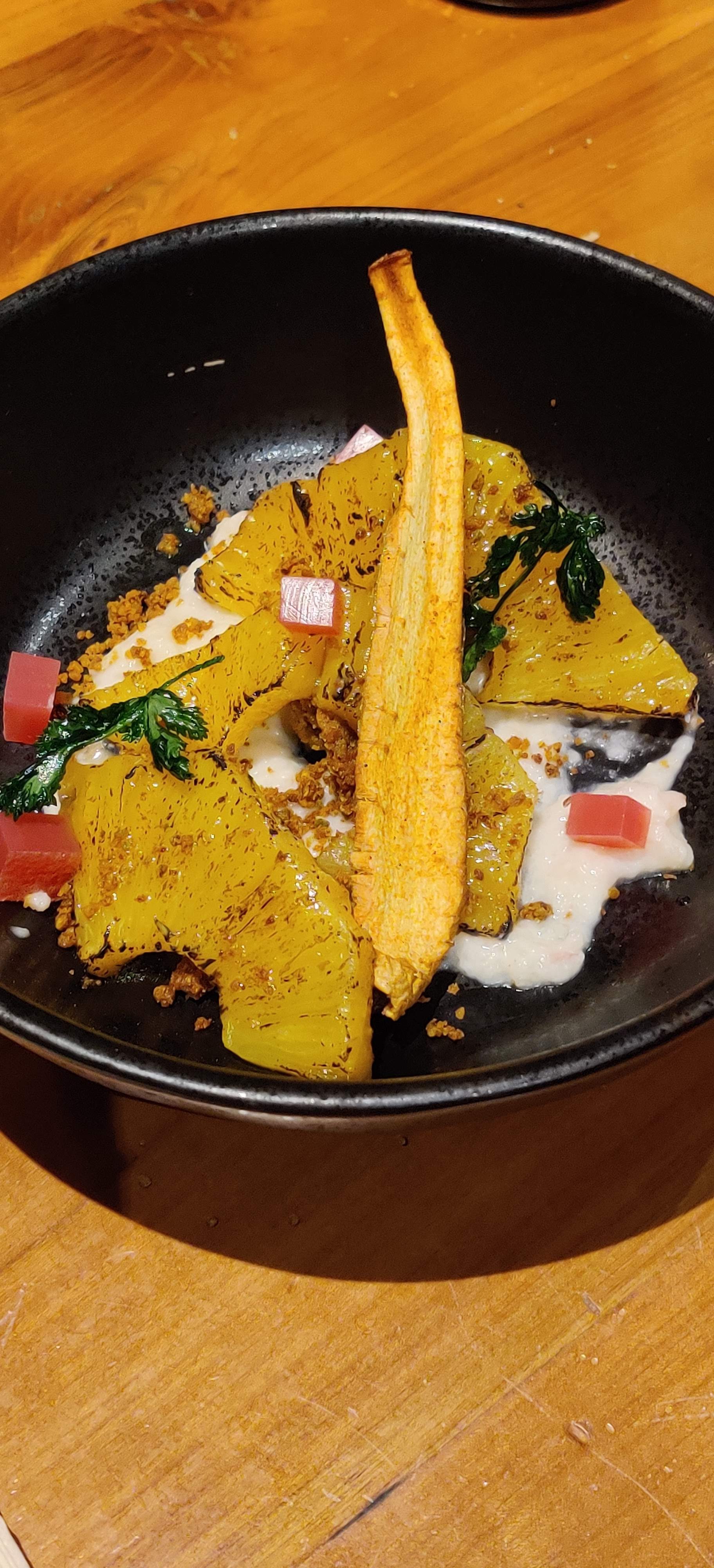 Excellente table , un mélange de saveurs et de produits très frais ..un vrai voyage pour les papilles ! un personnel au top , un accueil très chaleureux et professionnel.. aucun point négatif., je recommande Félicitations au chef et a l’équipe !