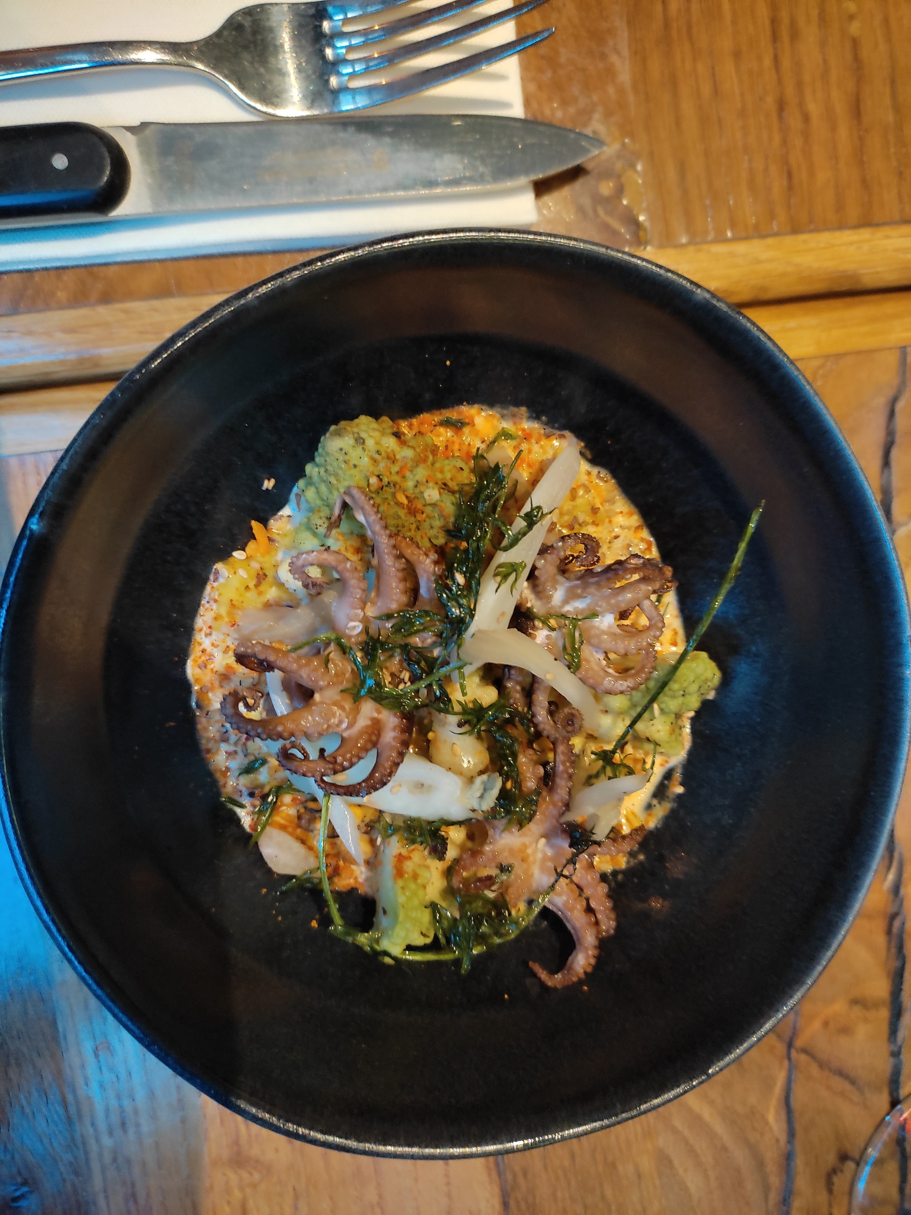 Excellent dîner, avec des saveurs et des associations gustatives originales et surprenantes ! L'assiette est aussi belle que bonne 😋 Une explosion de saveurs ! En plus, on ne se sent pas lourds après le repas. Les quantités sont juste parfaites. Bravo aux cuisiniers et aux serveurs qui sont talentueux, sympathiques et souriants 😊