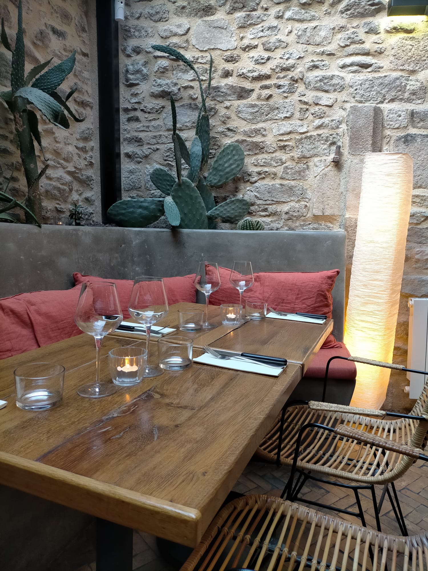 Posté le 03/08/2023 à 06:19"Un lieu chaleureux avec un belle décoration. Une cuisine recherchée avec des mélanges de saveurs intéressants. Au niveau des quantités, ce sont des petites portions, sauf pour la partie « fromage » où les assiettes sont étonnamment plus copieuses que les plats. Cependant, si vous prenez le menu complet (entrée/plat/fromage/désert), vous serez rassasié. En revanche, gros bémol, beaucoup d’attente. Nous avons eu notre entrée au bout d’une heure… Deux heures à tables et nous n’avions eu que l’entrée et le plat. Obligé de rappeler notre présence pour que quelqu’un s’occupe enfin de nous débarrasser et nous proposer la carte pour les déserts. Ce qui est étonnant c’est que des tables à côté de nous étaient servis tres rapidement : pendant que nous n’avions eu que entrée/plat eux avez eu tout leur menu alors qu’ils étaient une table de quatre et nous seulement deux … Merci cependant au jeune homme qui s’est occupé de nous pour la fin du service. Il a été très réactif et à fait un geste pour s’excuser de toute cette attente."