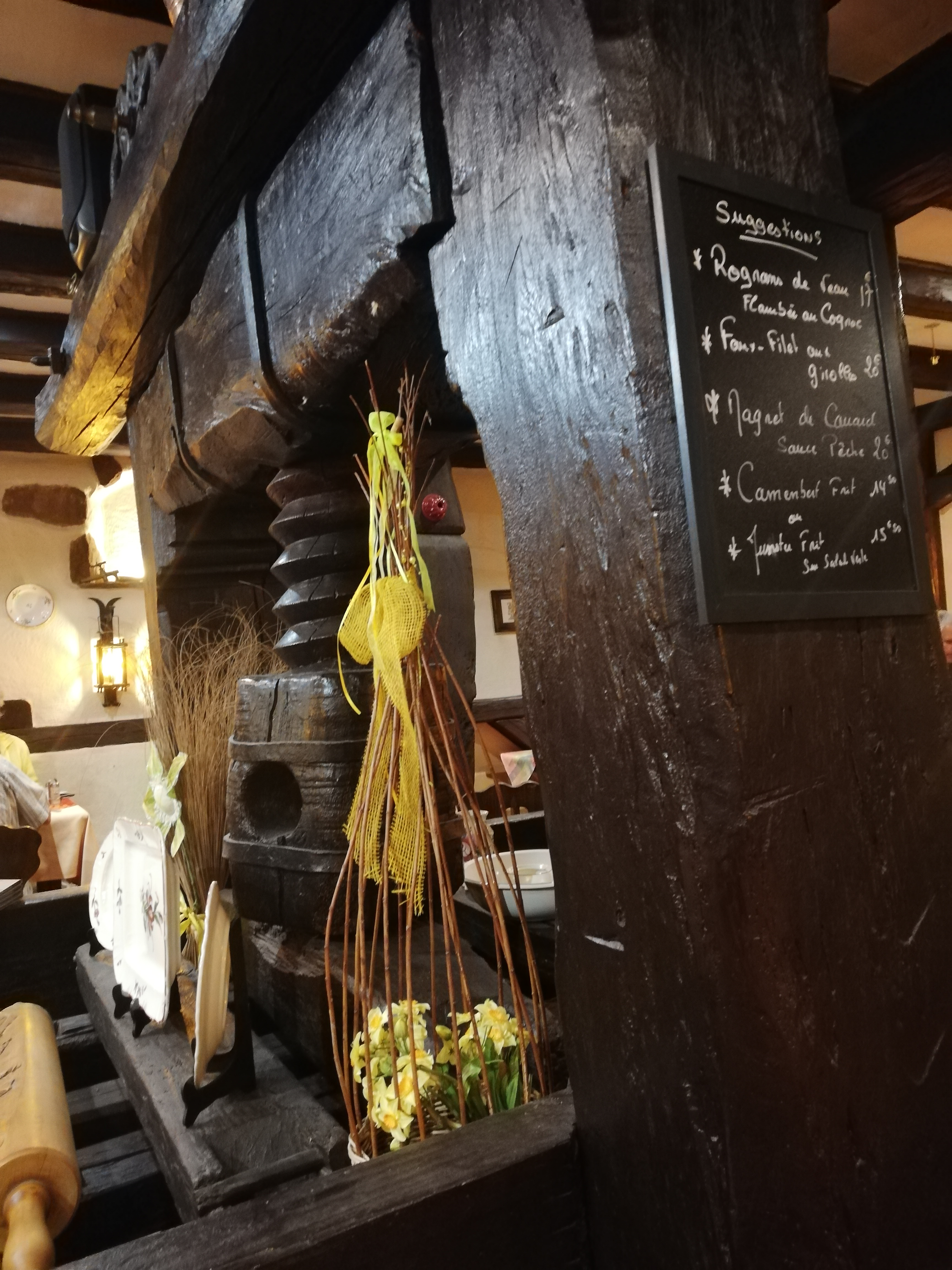 Posté le 16/02/2019 à 20:55"Nous avons passé un très bon moment. Bon accueil et nous avons très bien mangé. Chaleureux décor avec ce beau pressoir qui trône au milieu de la salle."