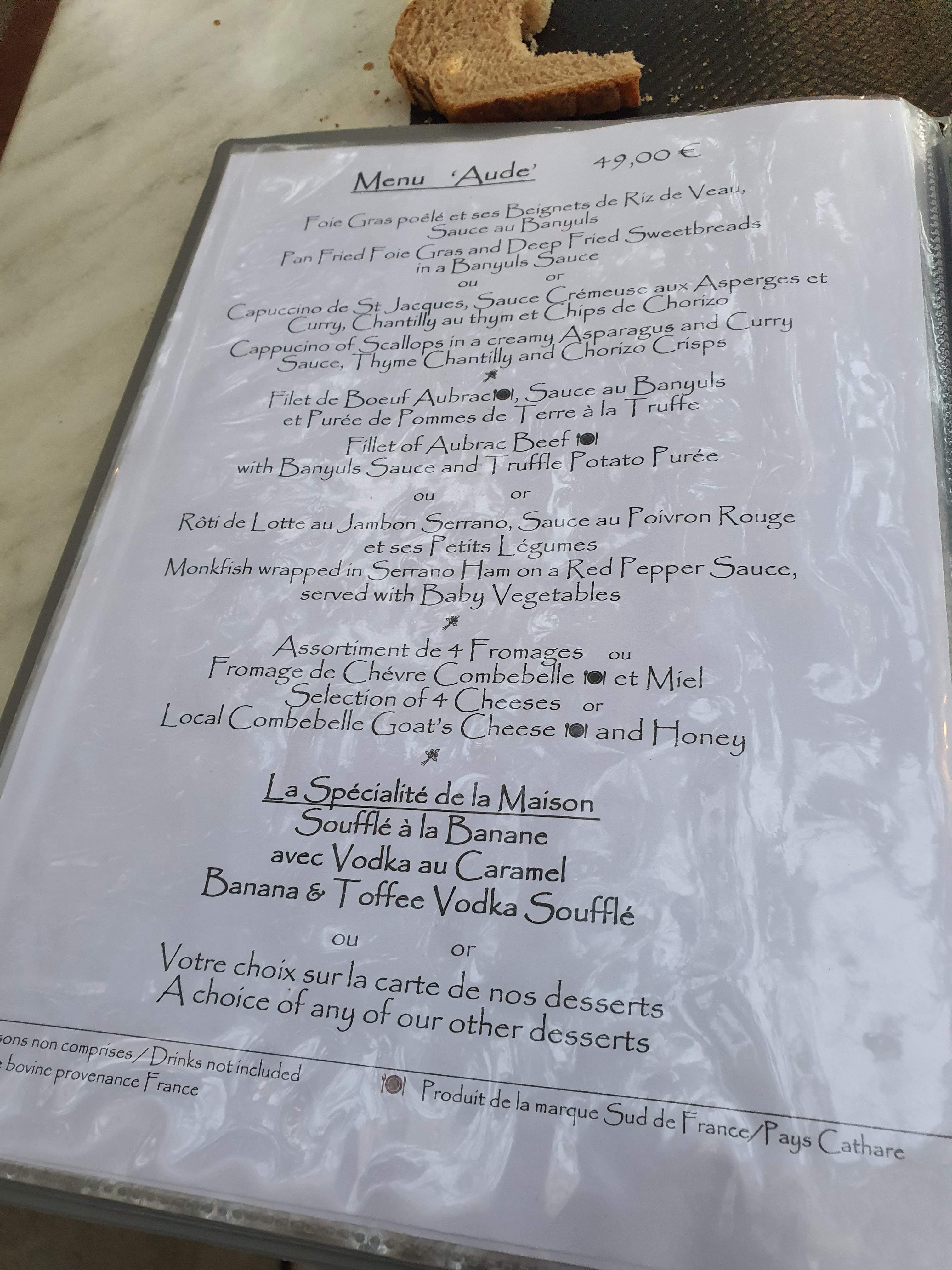Posté le 24/03/2019 à 17:24"Excellent!! Cuisine fine,délicate et délicieuse. Les sauces sont à tomber.Personnel en salle très accueillant et très aimable. Notre séjour sur le Canal du Midi s'est fini en beauté grâce à vous😊Merci"