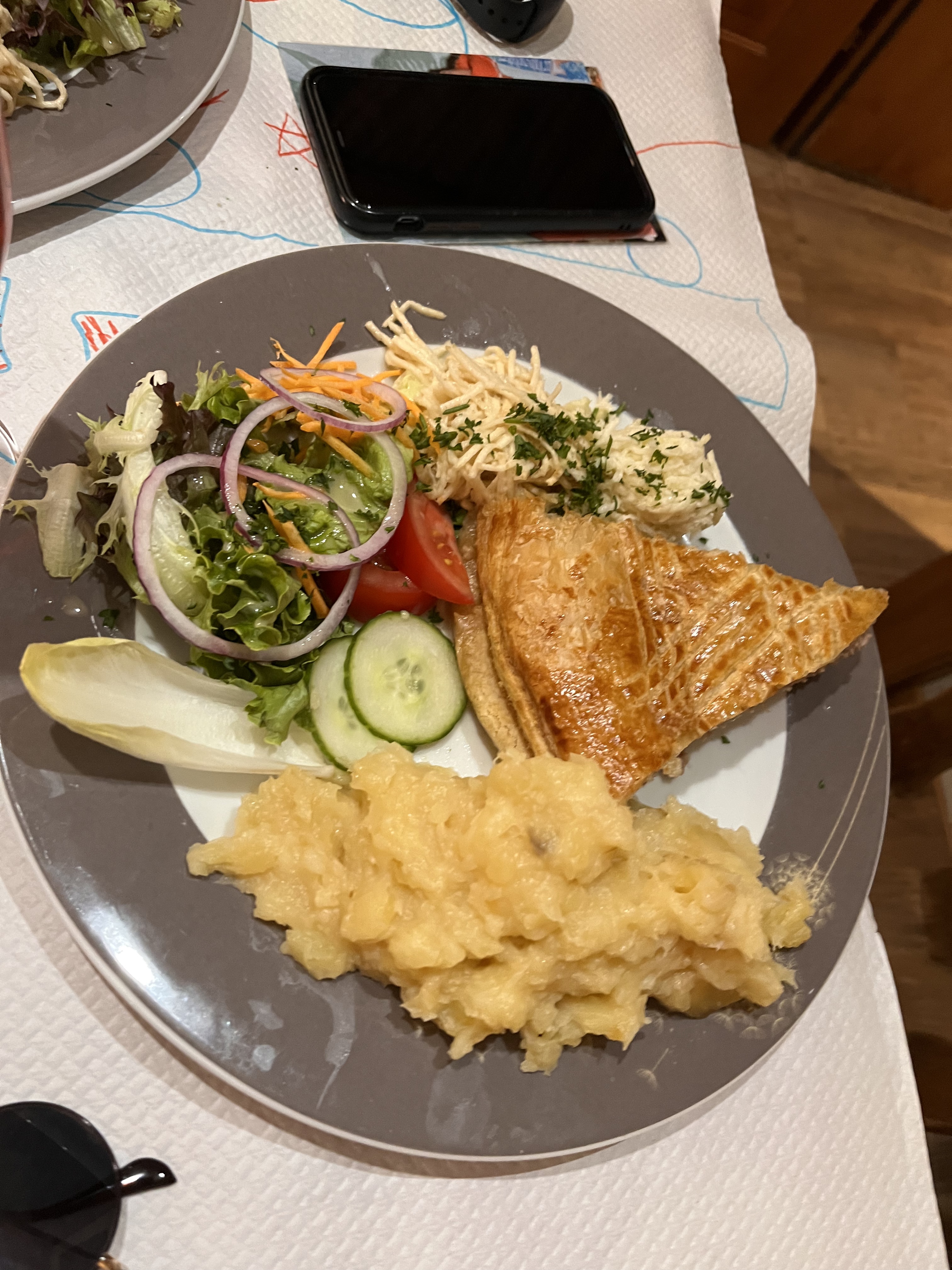 Après une randonnée en raquettes, le menu (soupe, collet et roïgabrageldis, tarte aux pommes) était juste parfait !