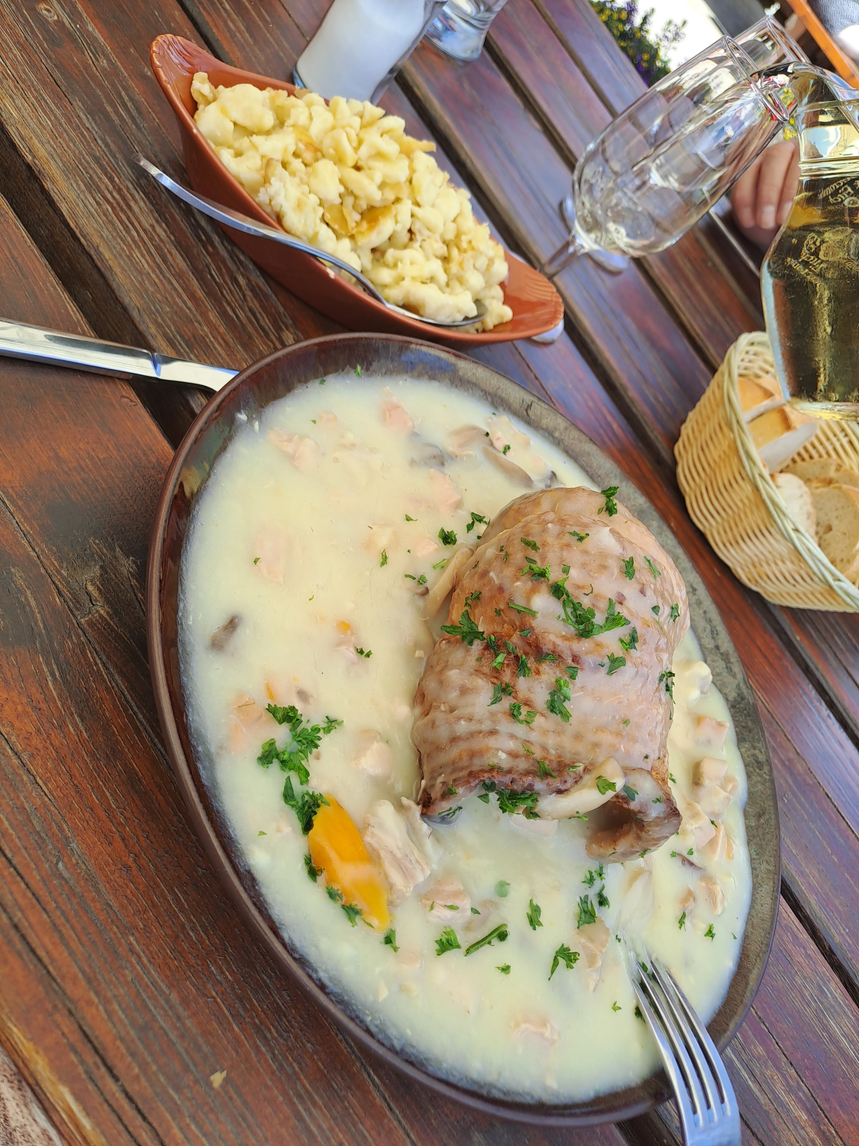 Une belle grande terrasse, de belles grandes assiettes bien fournies et des aubergistes très sympathique et disponible. Une chouette découverte!