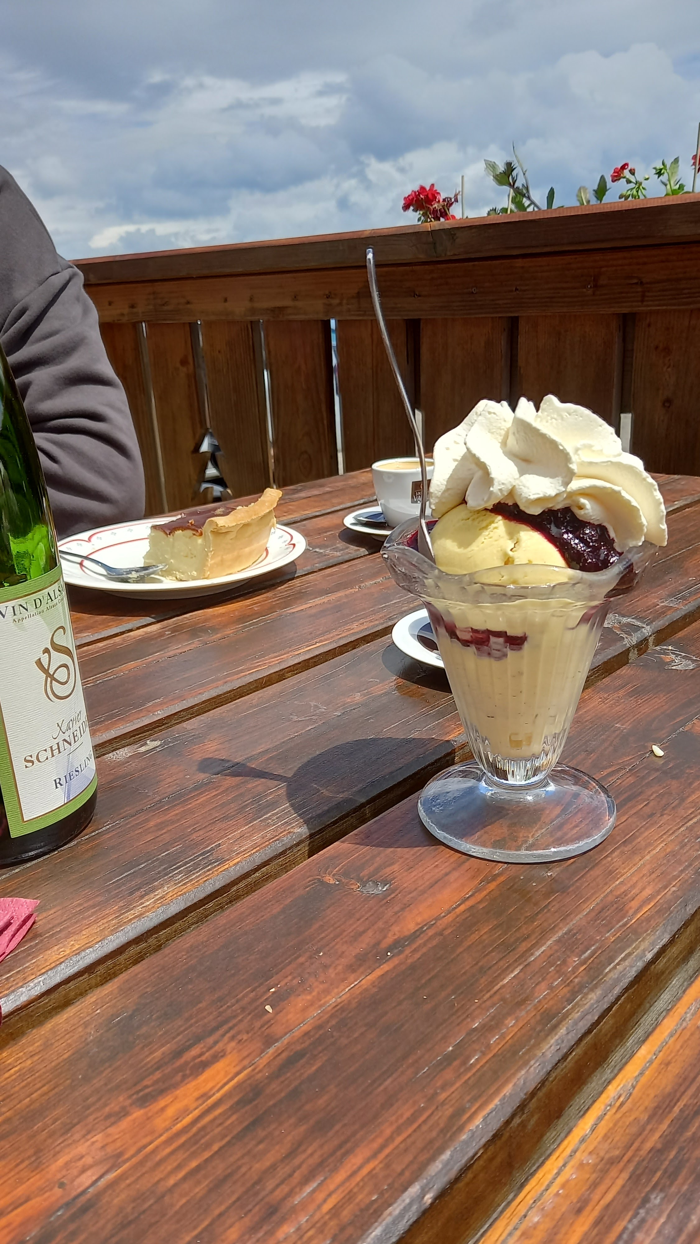 Après une super balade en moto, super resto, je conseille leur glace coupe du grand ballon. Aujourd'hui il fait chaud dans la pleine, aussi, petit tour à l'auberge du grand ballon pour manger un salade de chèvre chaud au frais. Tarte aux myrtilles toujours aussi délicieuse.