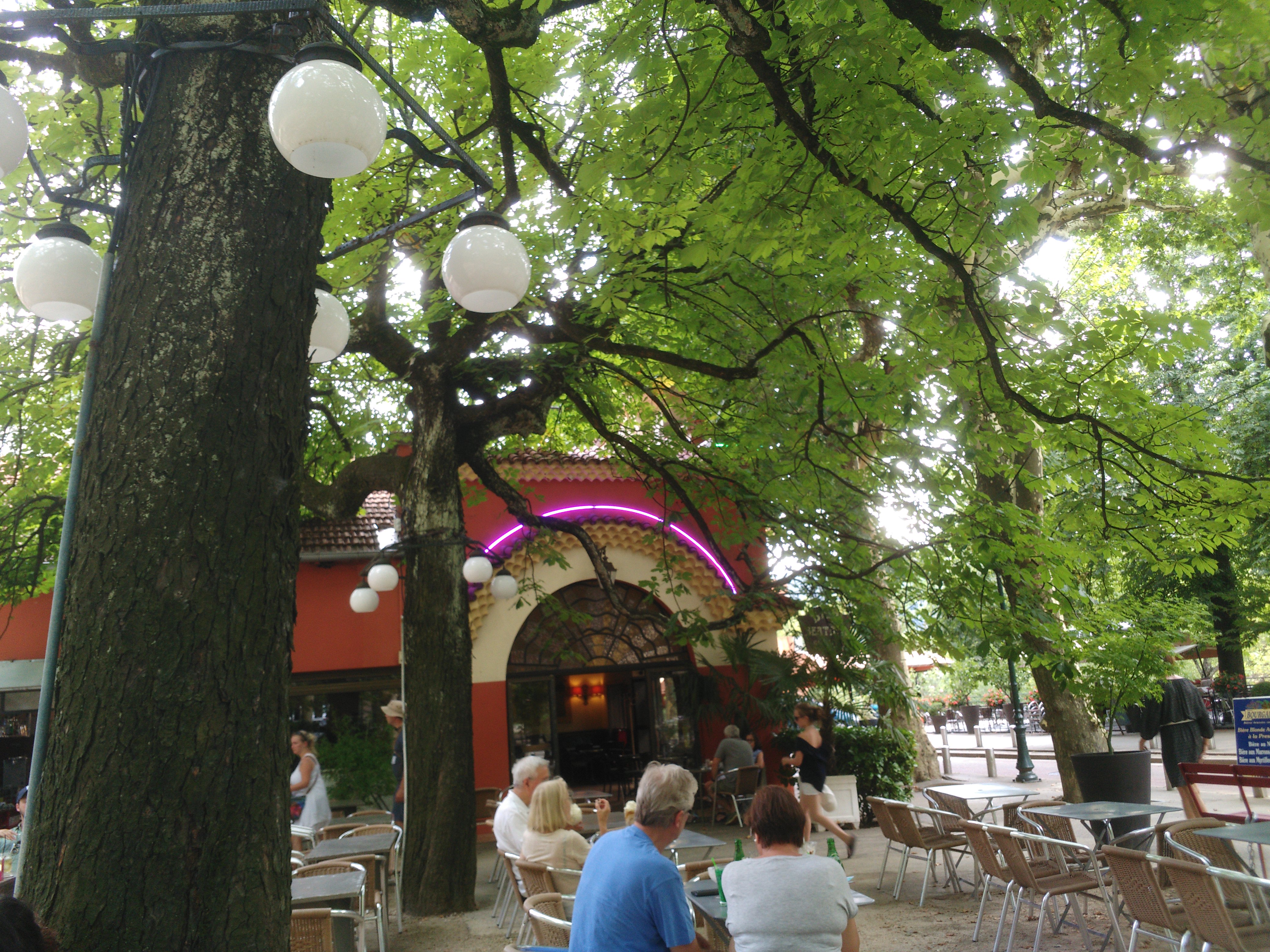 Terrasse très agréable sous les arbres, glaces fabuleuses dans une ambiance très animée. Un bon moment de détente dans ce cadre estival