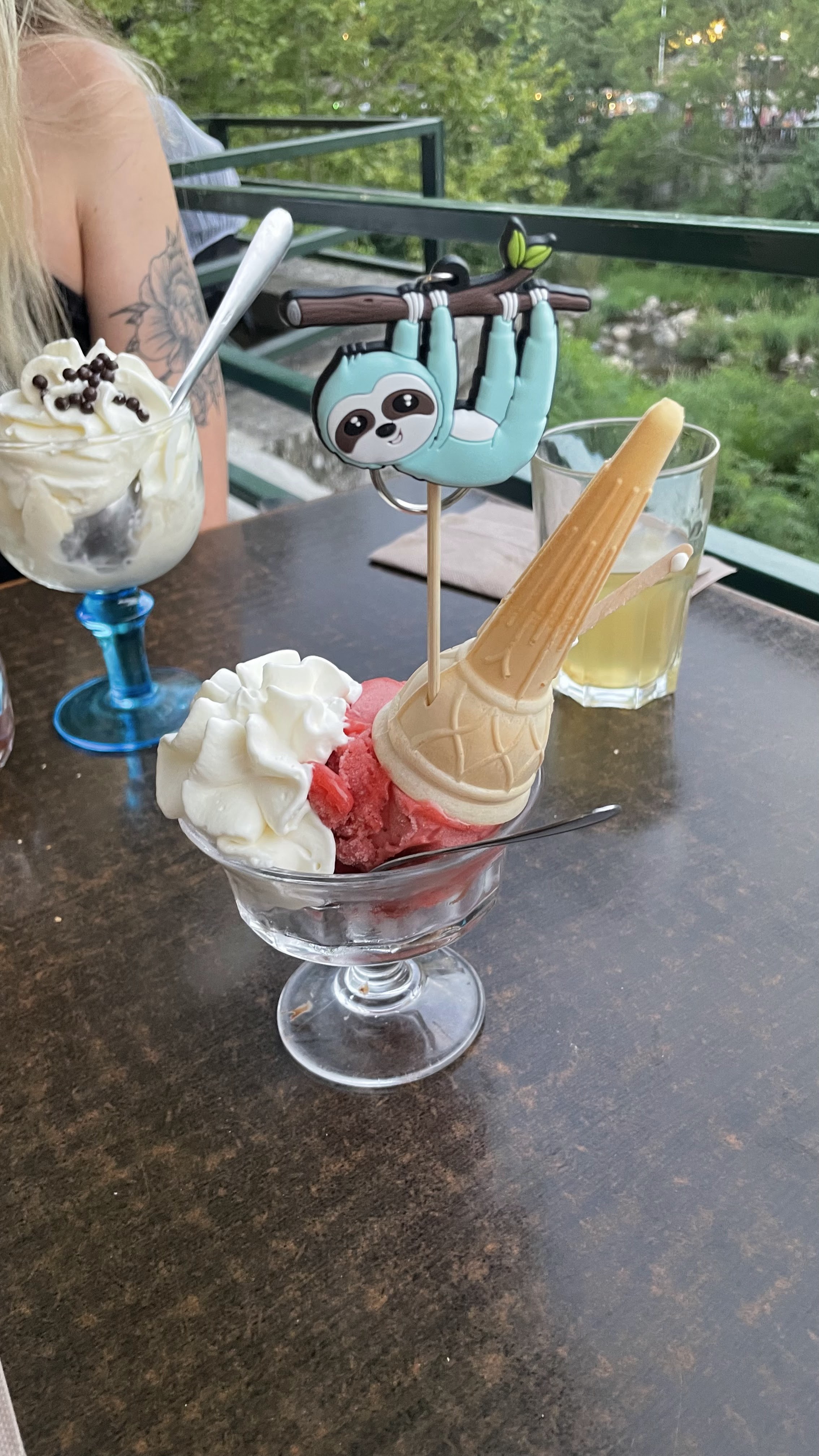 De magnifiques coupes de glace sur une terrasse ombragée ! Il y a également des cocktails proposés à la carte ! Je recommande !