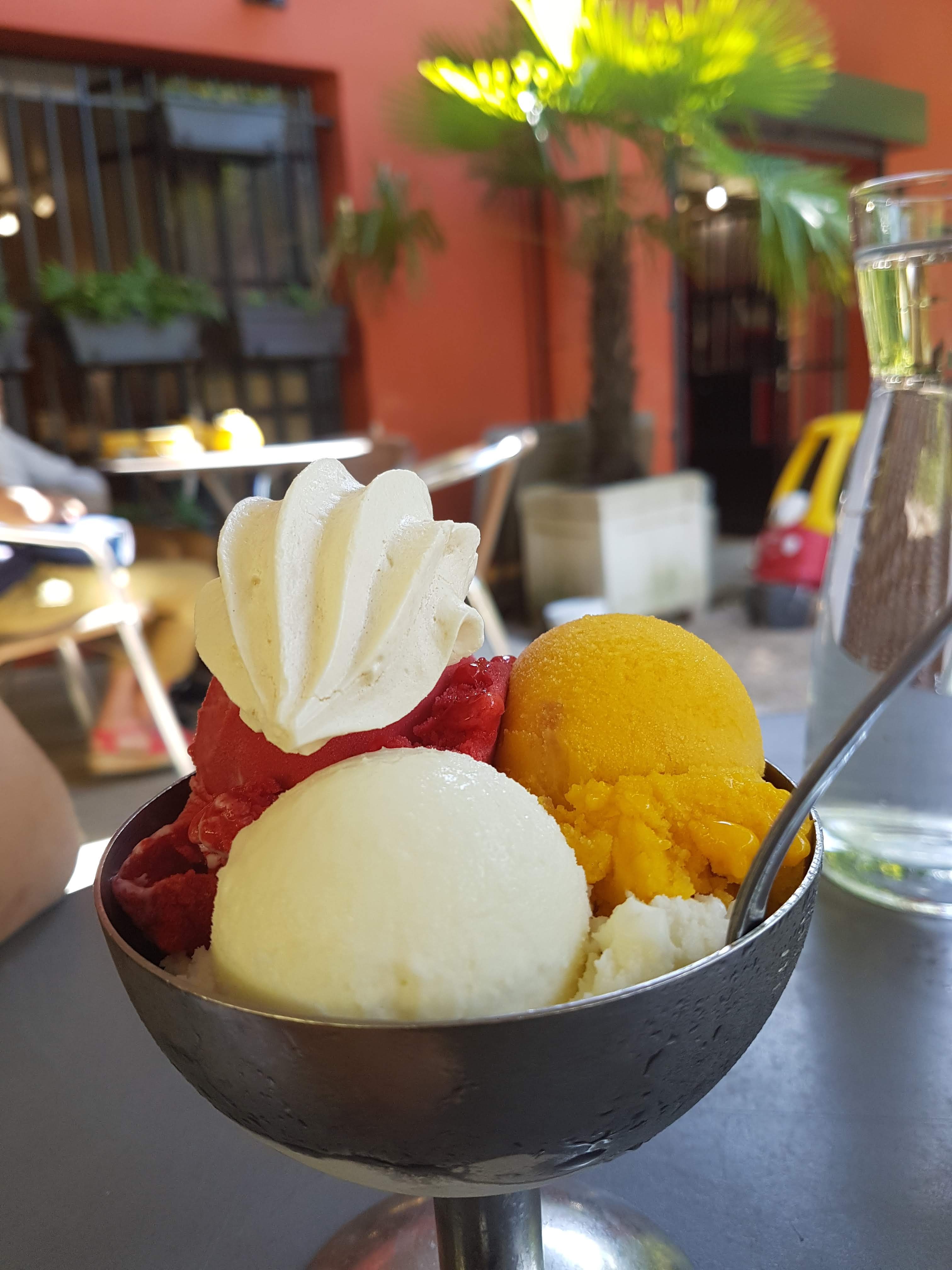 Très bonnes coupes glacées, une terrasse ombragée très agréable, je recommande !