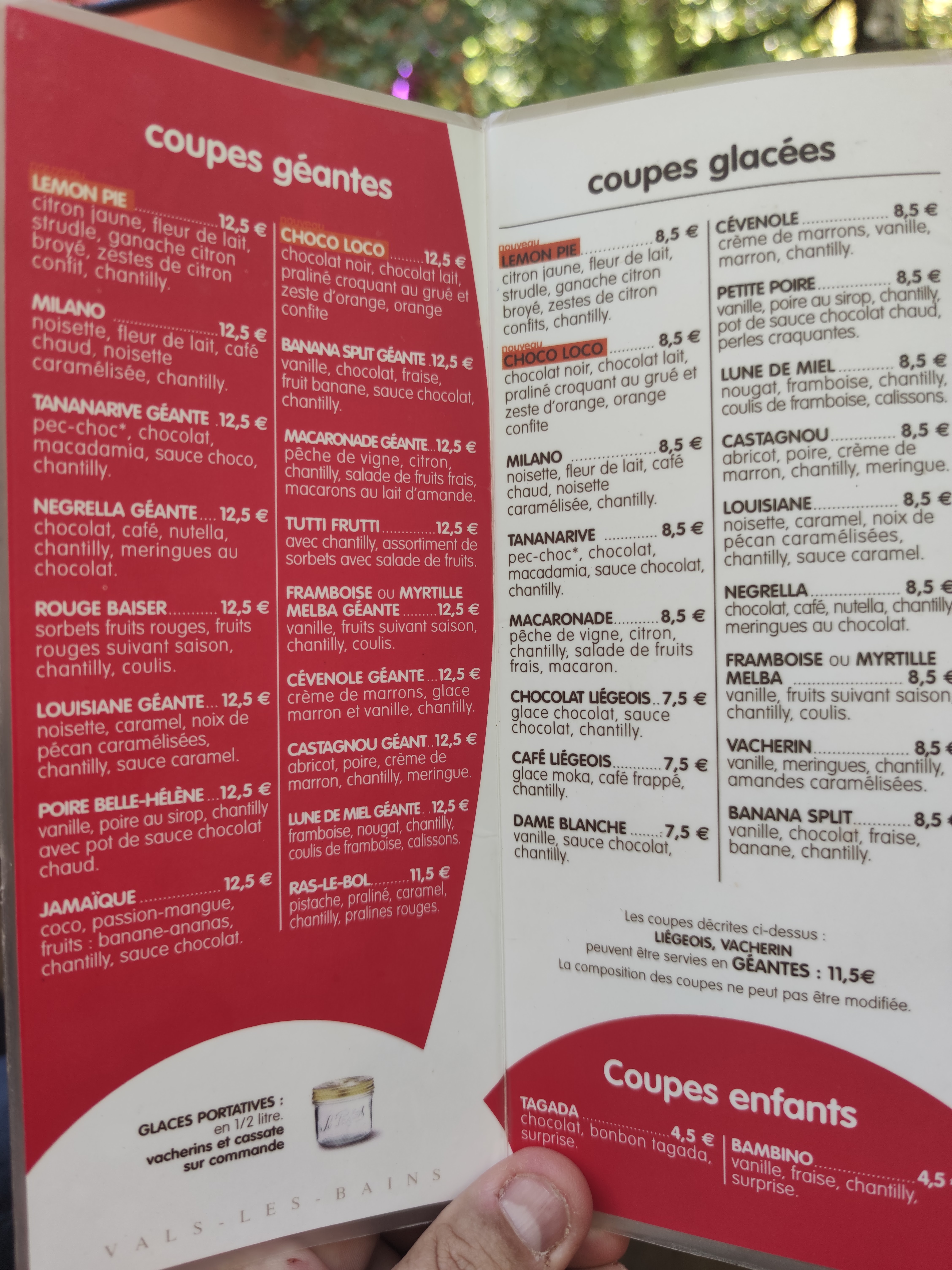 Les glaces géantes trop bonnes, la chantilly maison les glace les meilleurs de vals les bains et environs. Je recommande vivement.
