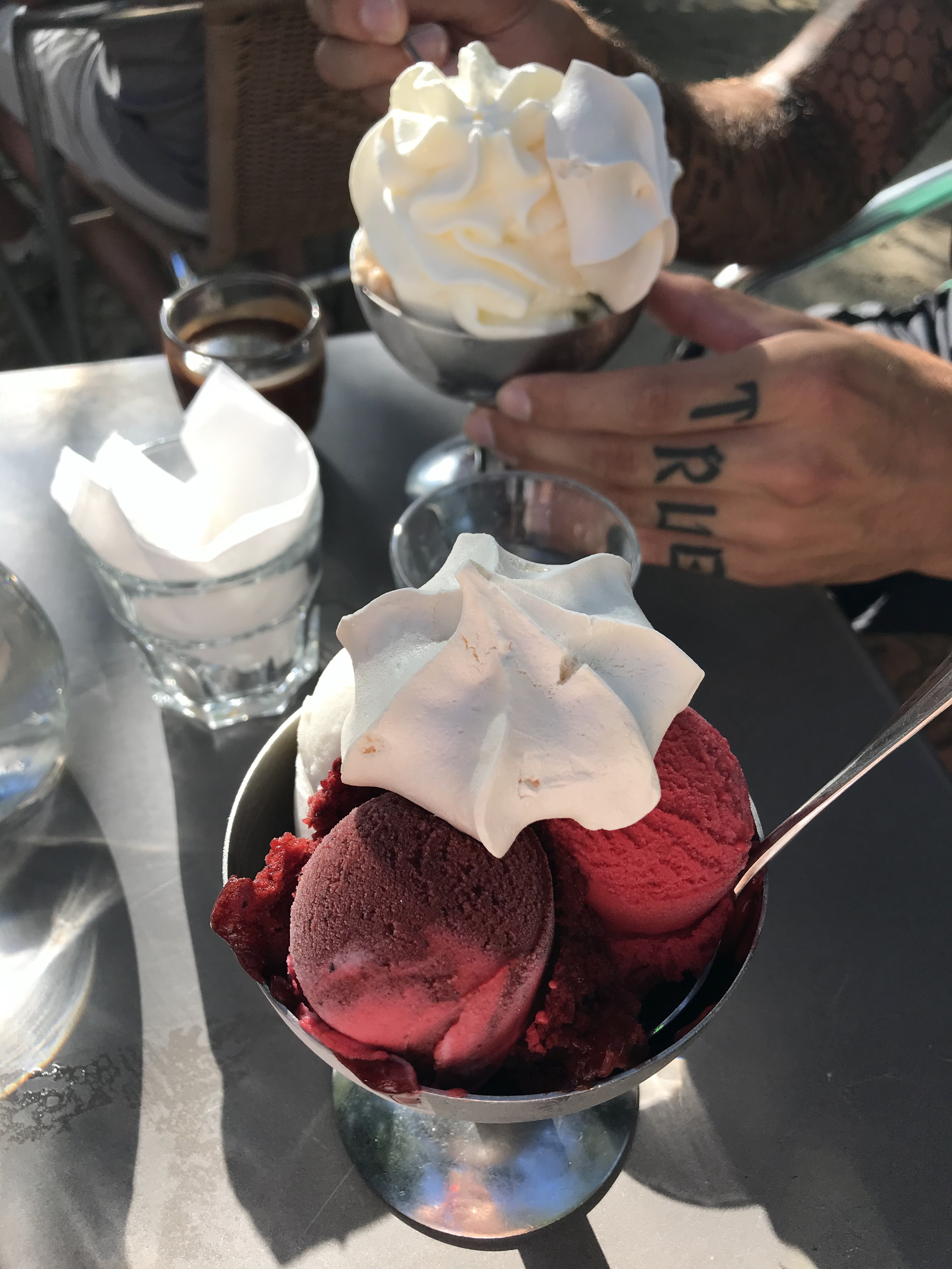 Quel régal... Le choix des glaces est cornélien. On a envie de tout manger... La facture est un peu élevée, mais cela valait la peine. Il faut bien se faire plaisir de temps en temps...