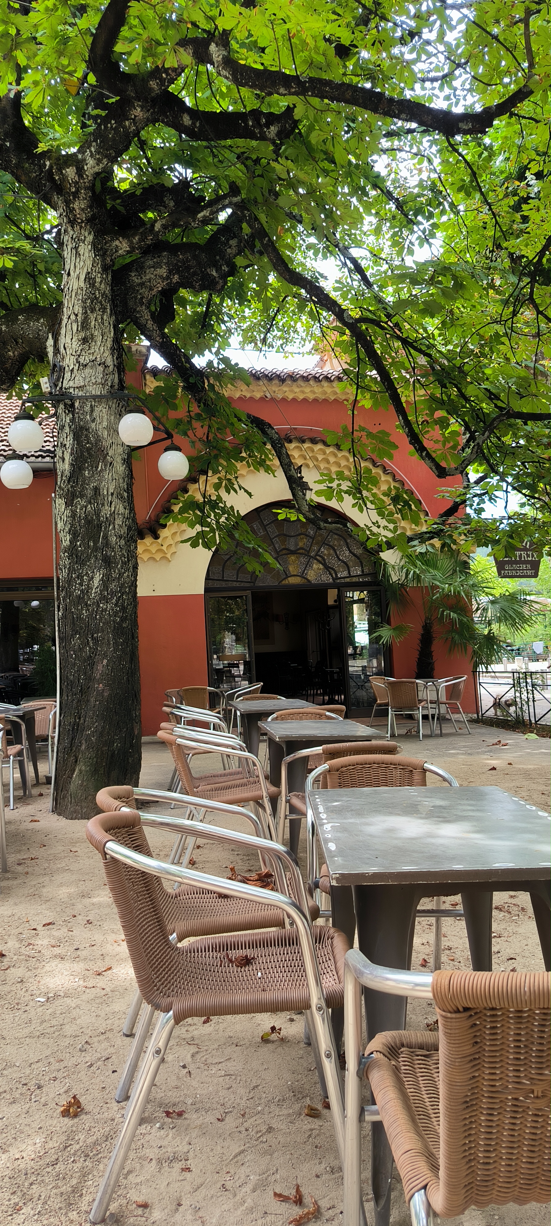 Venue découvrir ce lieu pourtant emblématique de vals, je repars sans un souvenir mémorable du moment passé. Certes, il y a énormément de monde pendant la haute saison, une attente minimale de 45 minutes pour venir débarrasser la table puis prendre la commande. Une deuxième attente pour être servi. Une table à côté de nous qui attend une bière depuis 1h…. Les glaces ne sont pas aussi exceptionnelles qu’annoncées, servies dans de vulgaires verres à sirop, à la limite de la propreté, et déjà fondues arrivées sur la table. Les serveuses, courent de partout les bras chargés de plateaux croulant sous les nombreuses commandes. C’est un marathon à toutes épreuves, elles en oublient certaines tables , servent ceux qui arrivent après, ne font pas attention à l’arrivée de la clientèle. Vraiment Dommage, car le lieu est sympathique.