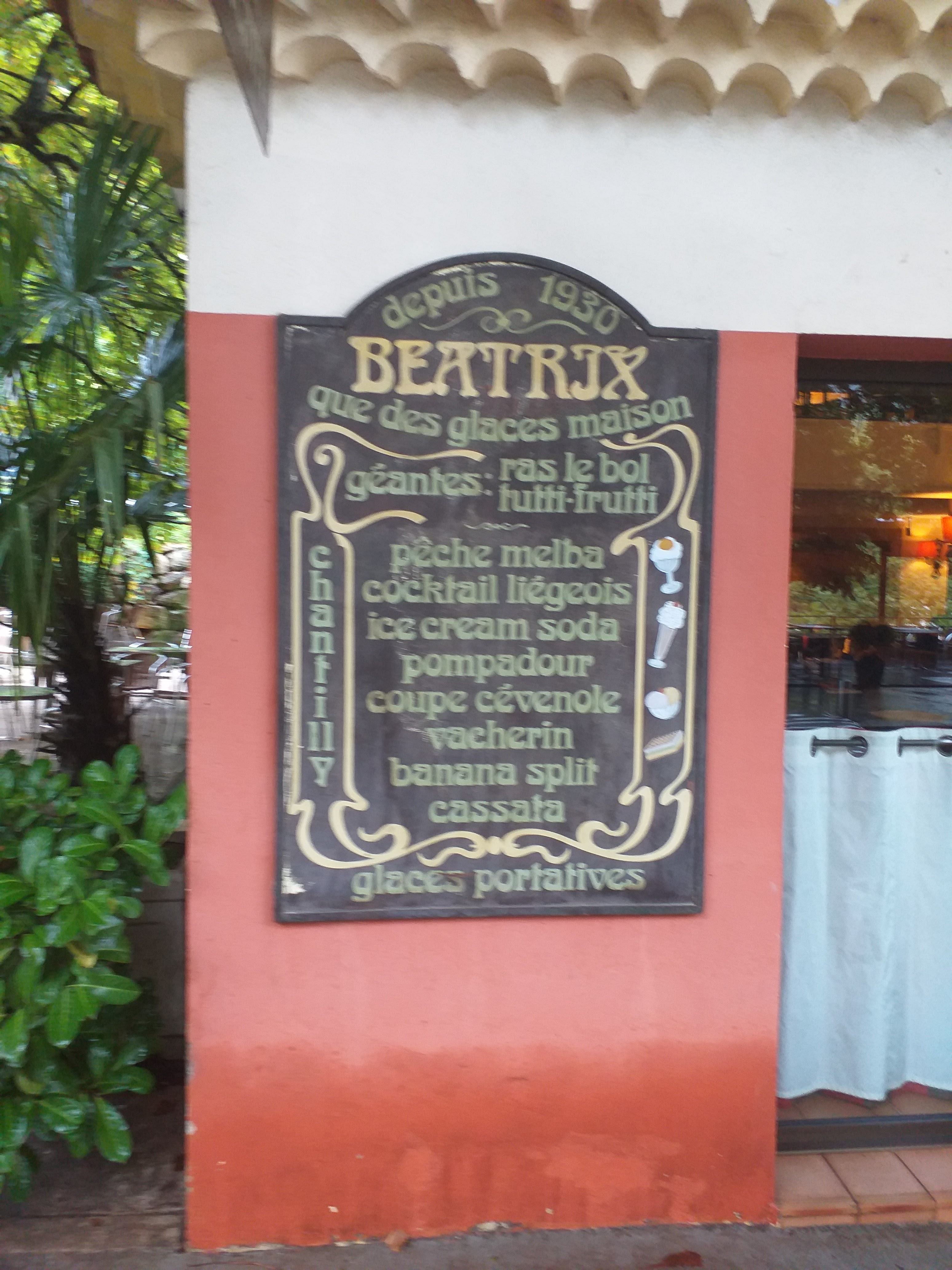 Beatrix nous a été conseillé pour ses glaces. Je confirme que celles ci sont vraiment délicieuses. Le cadre un peu désuet et un service de débutant explique qu'il n'y ait pas 5 étoiles. A tester malgré cela pour le bonheur des papilles