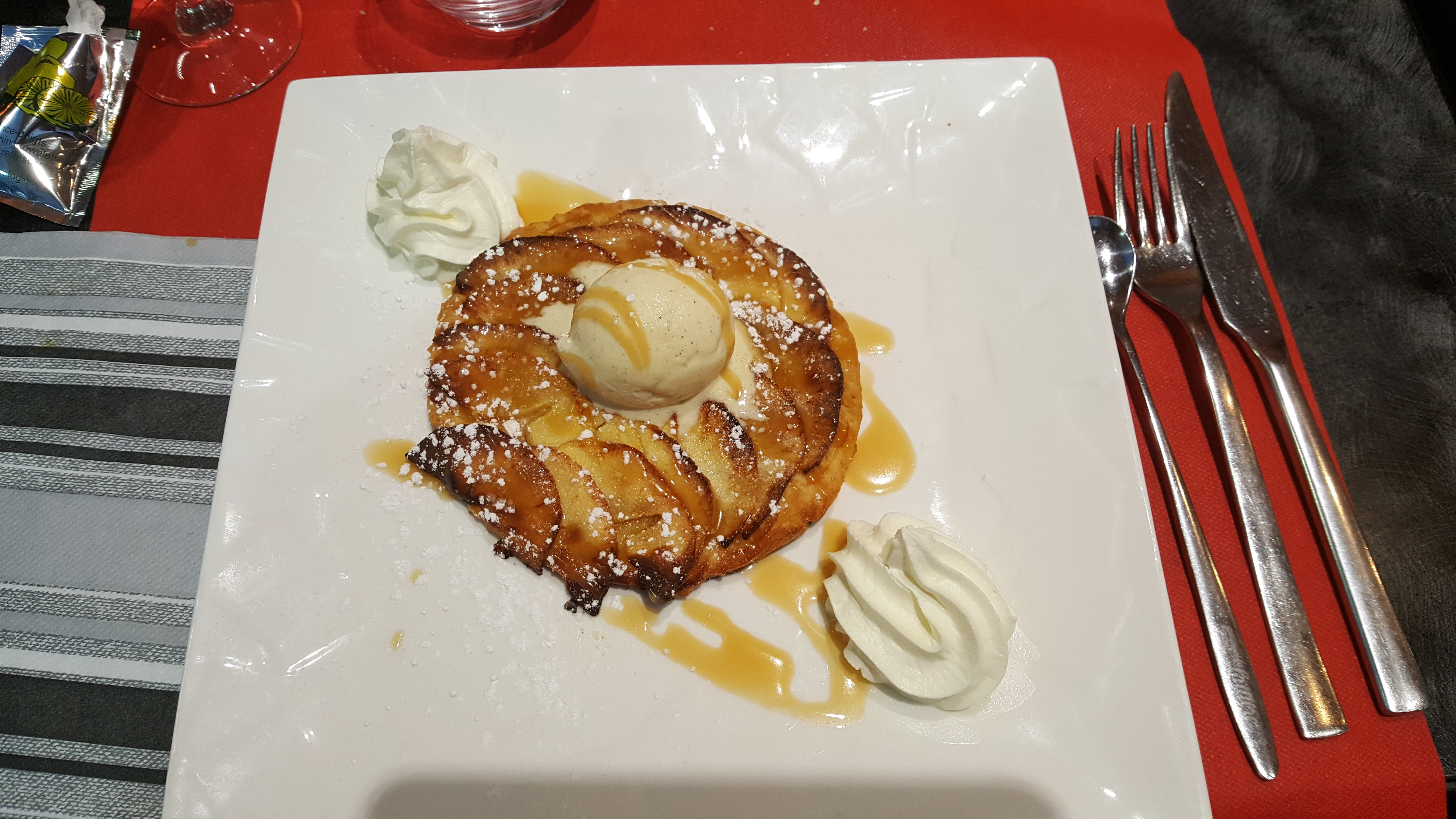 Posté le 21/09/2024 à 02:36"Petit restaurant sympathique recommandé sur internet. Bonne cuisine ( délicieuse choucroute de la mer). Serveur sympathique et à l'écoute. Crêpe normande aux pommes et caramel beurre salé maison (ai demandé un supplément boule de glace vanille et flambée au Calvados), une tuerie. Nous avons passé un bon moment avec l'envie de découvrir tous les plats sur la carte"