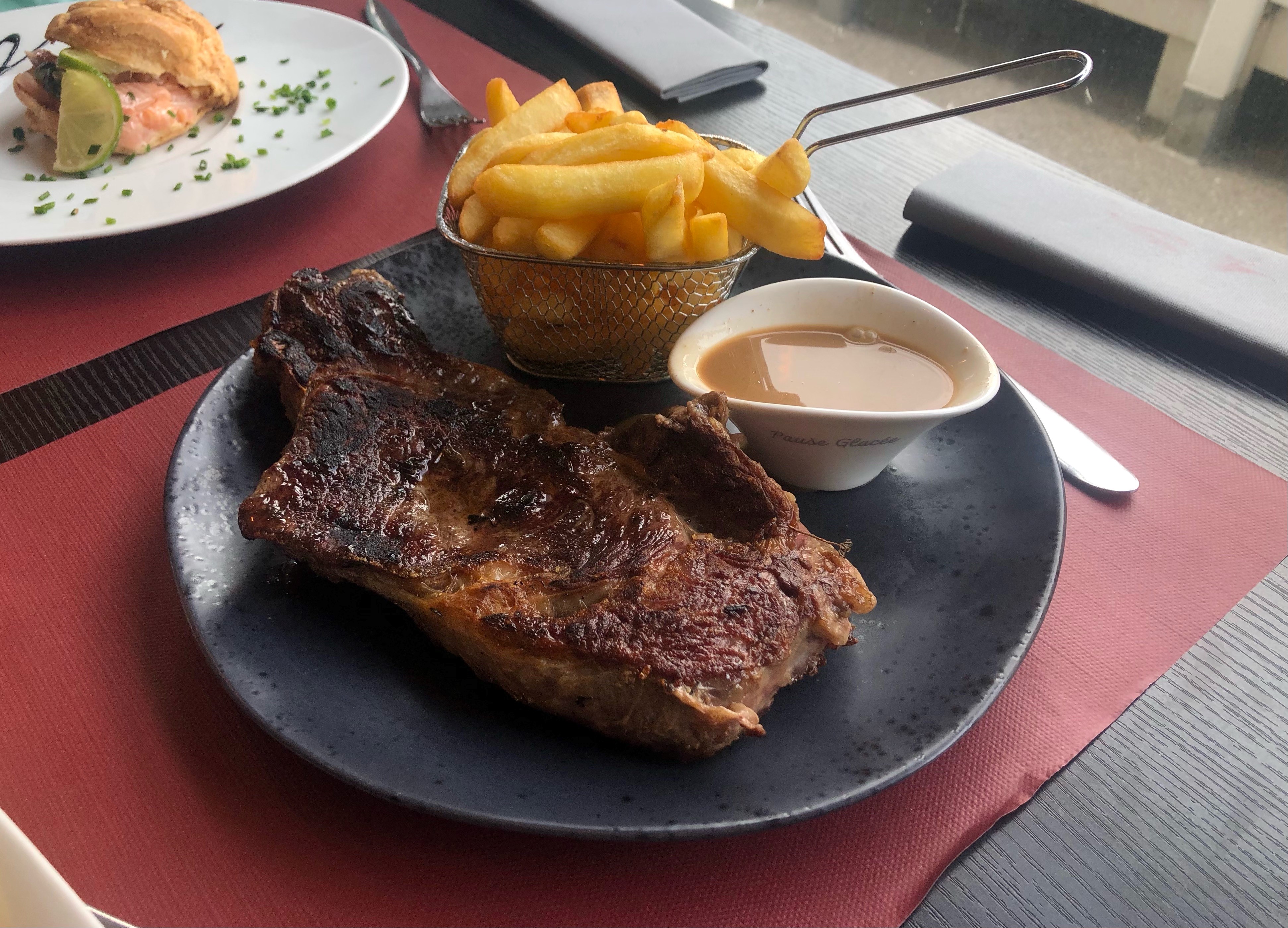Nous sommes venus en famille un samedi 12h, serveuse un peu maladroite, apéritif servi un verre par un verre, erreur dans les commandes. Frites congelées pour un restaurant je trouve sa lamentable et le prix d'une portion de frites est extrêmement chère 4 euros rien ne vaut une bonne frites fraîche, et le pire c'est qu'ils étaient en rupture de stock de mayonnaise pour un restaurant assez chère je ne trouve pas sa logique sachant que c'était un samedi midi il y a des magasins d'ouvert pour dépanner la clientèle. Dessert congelés et non fait maison. Je n'y retournerai plus trop chère à mon goût et vraiment pas top