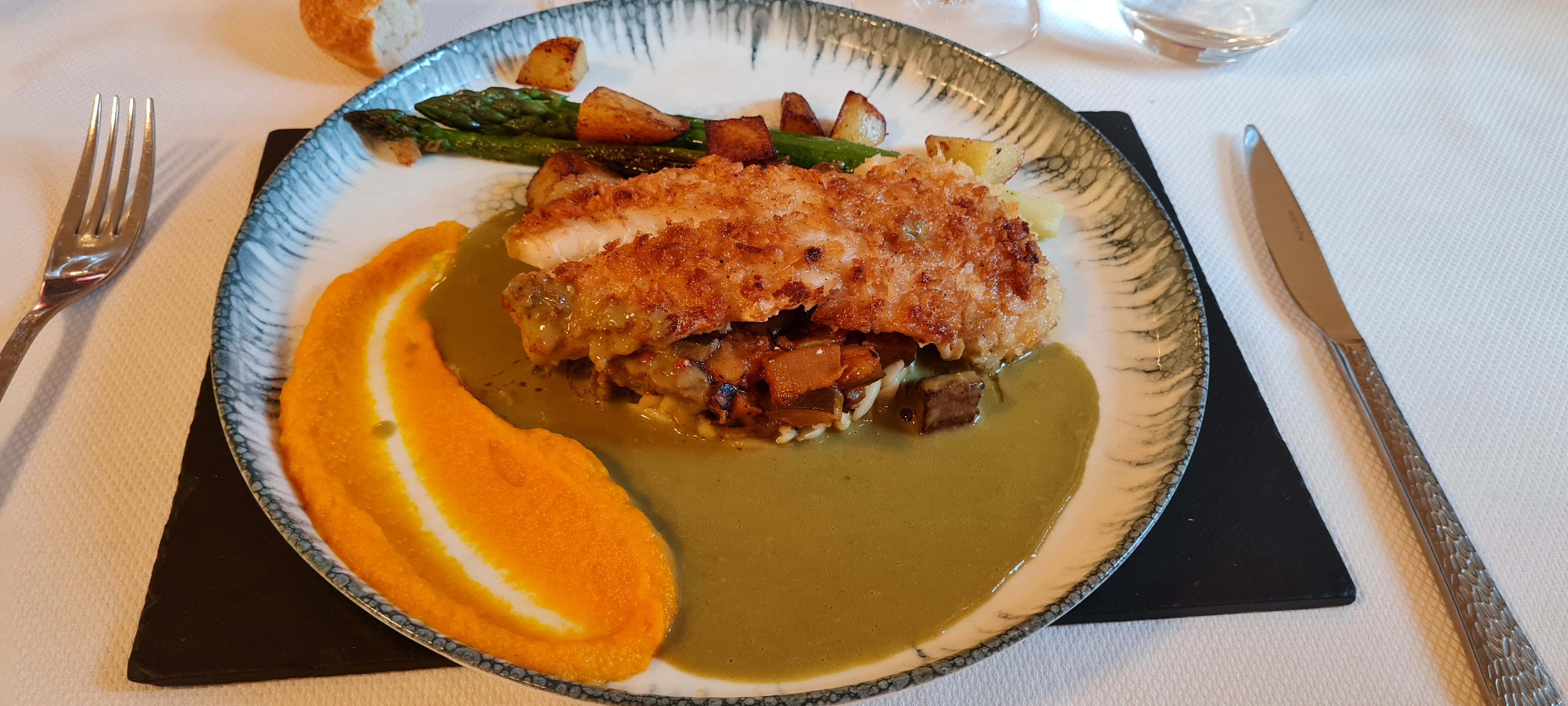 Cuisine raffinée, assiettes copieuses, service impeccable, restaurant silencieux, de l'espace entre les tables, nous avons passé un excellent moment