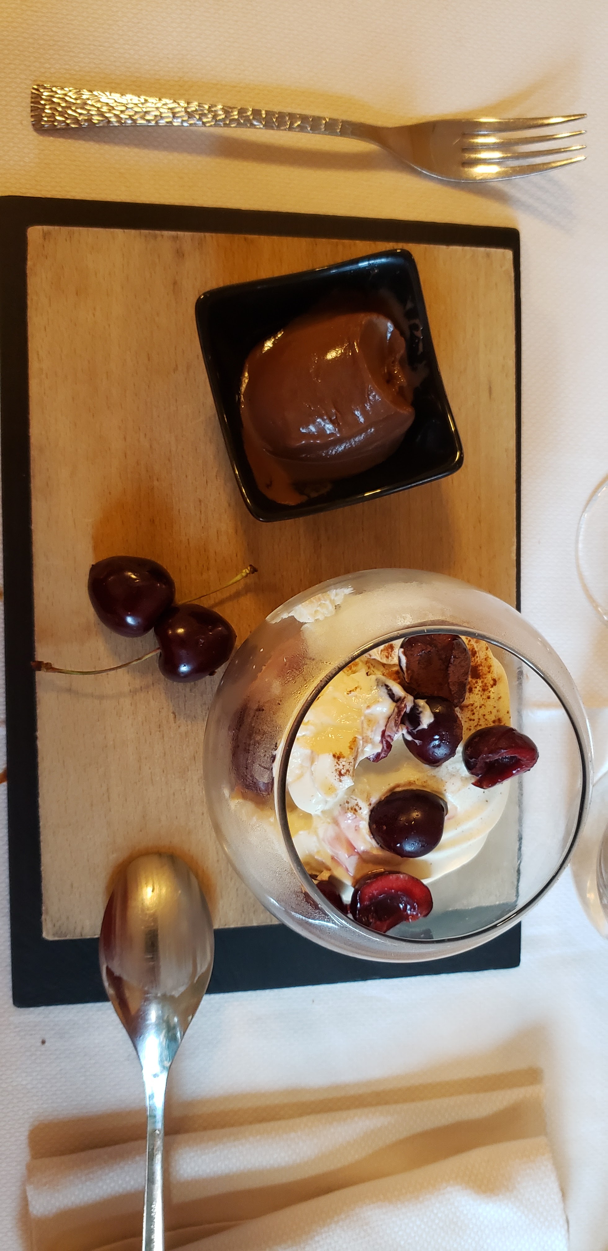 Une soirée inoubliable De l entrée au dessert Délicat copieux Délicieux raffiné Service parfait et discret Le dessert présenté par le chef Voilà notre belle soirée Rien à dire Seulement une belle adresse à visiter Merci beaucoup nous gardon un souvenir INOUBLIABLE