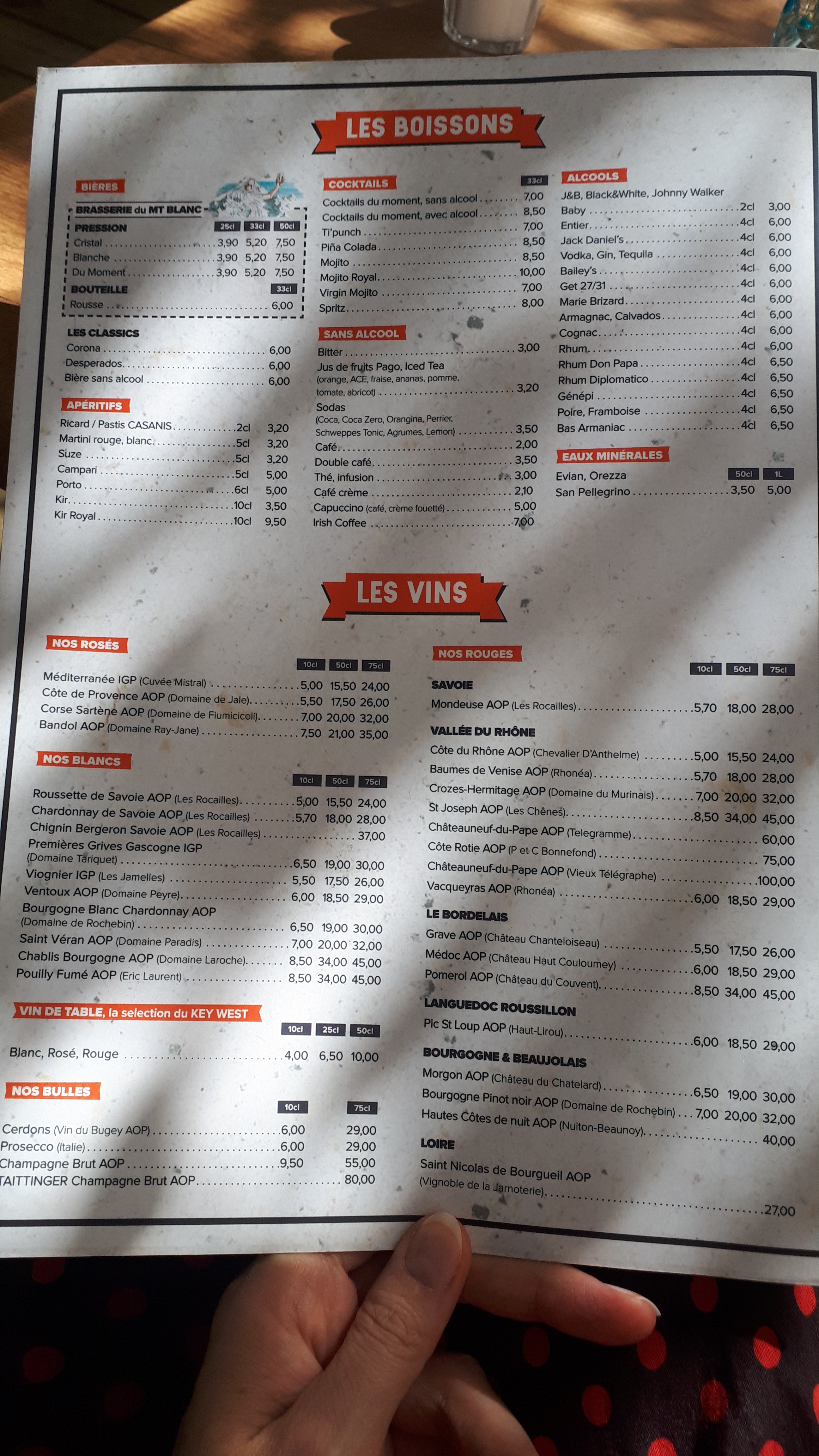 idéalement situé au coeur de la zone commerciale d'épagny, non loin d'Annecy, accessible en voiture avec un grand parking pour stationner, mais aussi desservi par le réseau de bus à quelques pas de là. Entre le nom et le décor entièrement inspiré de Key West en Floride, on pourrait s'attendre à une restauration plus représentative des spécialités de l'endroit. Mais la cuisine proposée est totalement traditionnelle de France, pas même une Key Lime Pie (la spécialité la plus incontournable de Key West !) à la carte des desserts, petite déception personnelle, mais rien qui ne dérangera le grand public. Sinon quand on aime/connait le vrai lieu qui a inspiré le thème, on reconnait plein de belles références, le style colonial dans l'architecture du bâtiment en bois et ses couleurs, un petit hommage à Ernest Hemingway, des représentations picturales, et même une référence au sloppy Joe local, même une plaque d'immatriculation qui correspond. Une terrasse ombragée mais laissant filtrer le soleil pour le plaisir. Des équipements modernes et fonctionnels (toilettes à neuf avec de très appréciables robinets et distributeurs de savon sans contact), des tables de taille adaptée, des assises confortables. Une carte classique avec des choix variés pour un peu tous les goûts, quelques options végétariennes et plats adaptés aux allergies sur demande. Des plats aux quantités bien dosés, rien de très raffiné ou sophistiqué mais la saveur des aliments est bonne, type plutôt brasserie simple. Personnel sympathique et serviable, aussi rapide et disponible que possible malgré la forte affluence du midi, on apprécie l'attention à l'efficacité quand on dit avoir un temps limité. Les prix restent abordables et correspondent bien à la moyenne locale et à la qualité proposée.