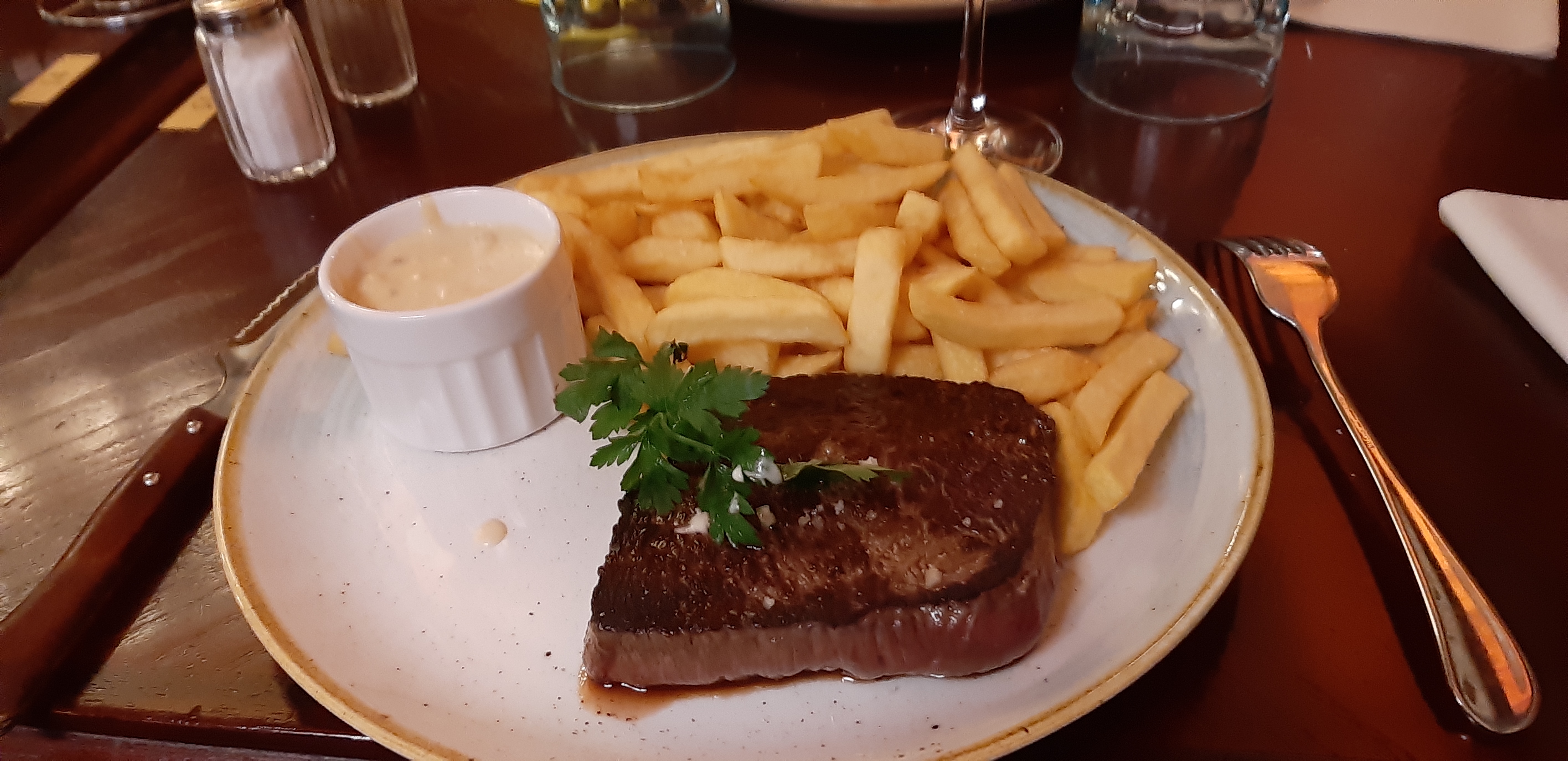 Posté le 10/12/2018 à 12:38"Nous y sommes allés avec mes collègues de travail. Service rapide bon accueil. Le pavé de rumsteck et ses frites nickel. En ce moment la bière de Noël.... ☺️🍺"