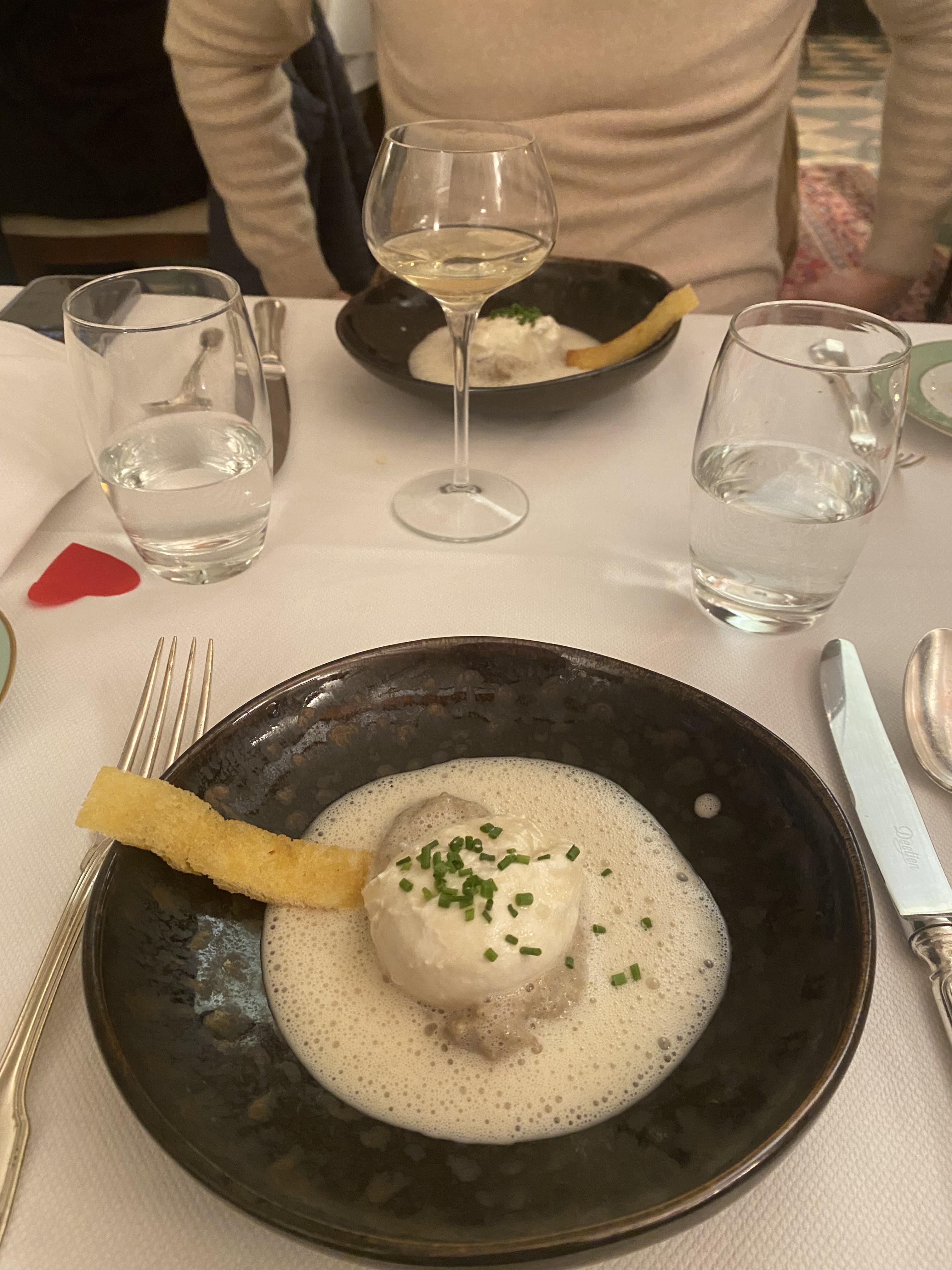 Un repas sans aucune fausse note. Tout était parfait, je me suis régalée d'un foie gras chaud avec un compotée de figues, suivi de ravioles de ris de veau, champignons et crumble de châtaignes avec mon dessert préféré le Paris-brest. Mon mari a dégusté le saumon soufflé aussi bon que celui de Paul Haeberlin. L'ambiance est chaleureuse, le service discret, souriant et attentionné. Bel accueil qui a comblé nos attentes.