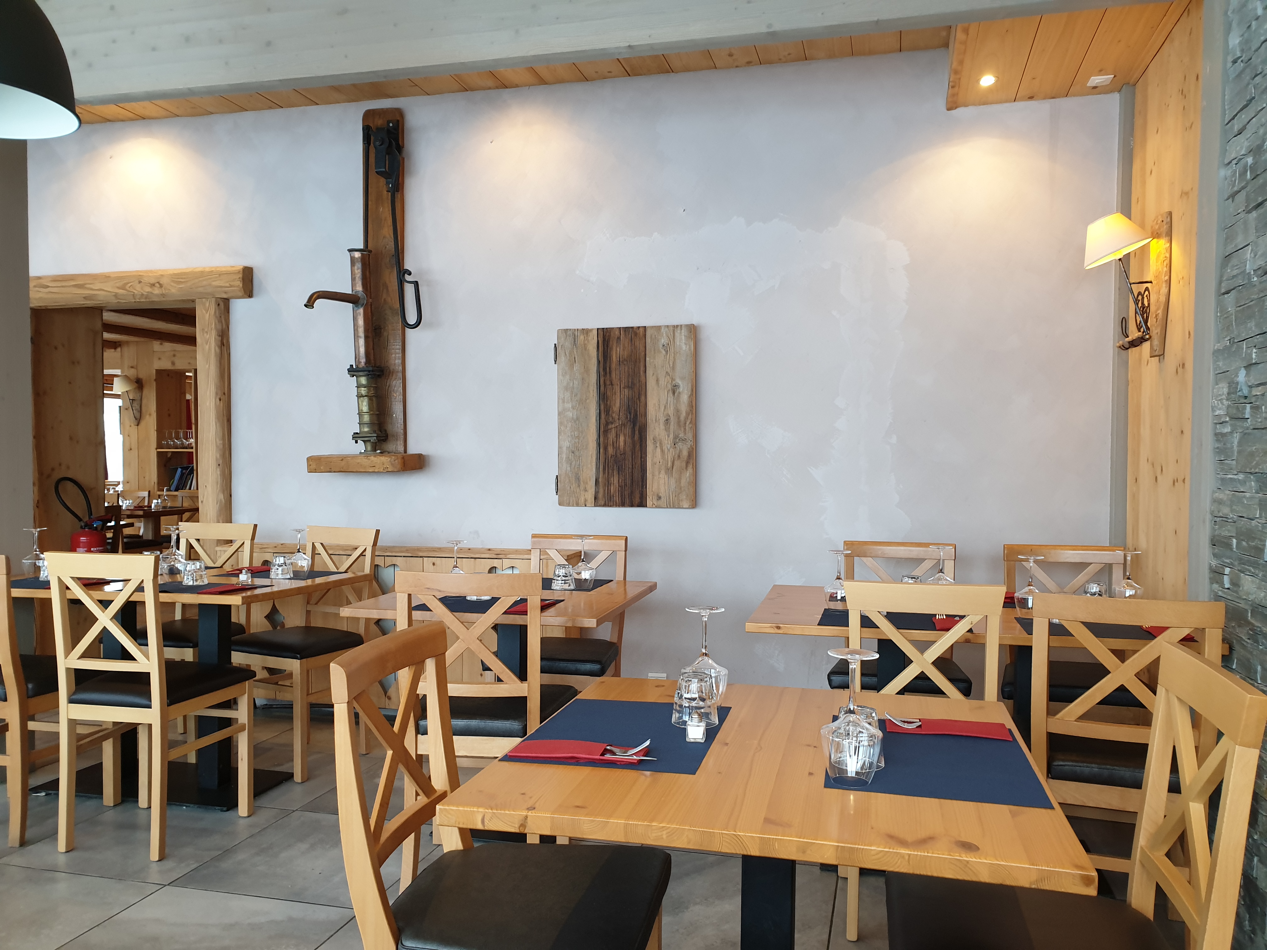 Bel deco. Personnel agréable on a bien mangé. Tarif correct pour la station. Peut être un peu trop d oignons dans leur tartiflette.