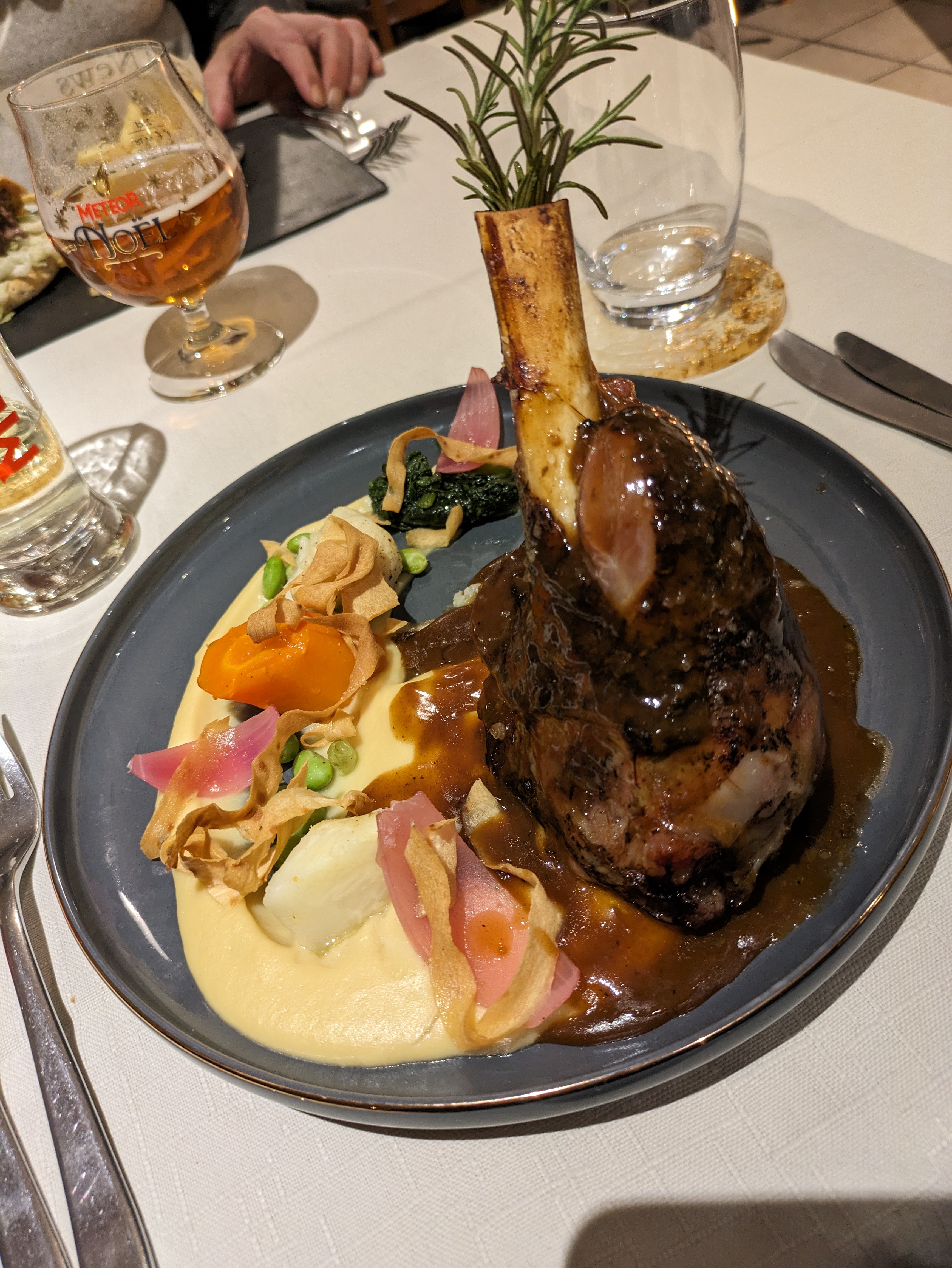 La qualité des plats et le visuel est au rendez-vous avec un cadre sympathique. En revanche gros point négatif sur le service, nous étions une table de 20 personnes avec réservation pour un repas de Noel et on nous annonce que le fut de bière de Noel est vide (en début de service), on nous propose donc de la Meteor pils mais après seulement quelques verres (25cl) ils sont également en rupture. Idem pour certains digestifs… Avec tout l’argent qu’on a laissé au restaurant pour ce repas, même pas de geste commercial pour ces désagréments. Dommage ça ne donne pas envie de revenir.