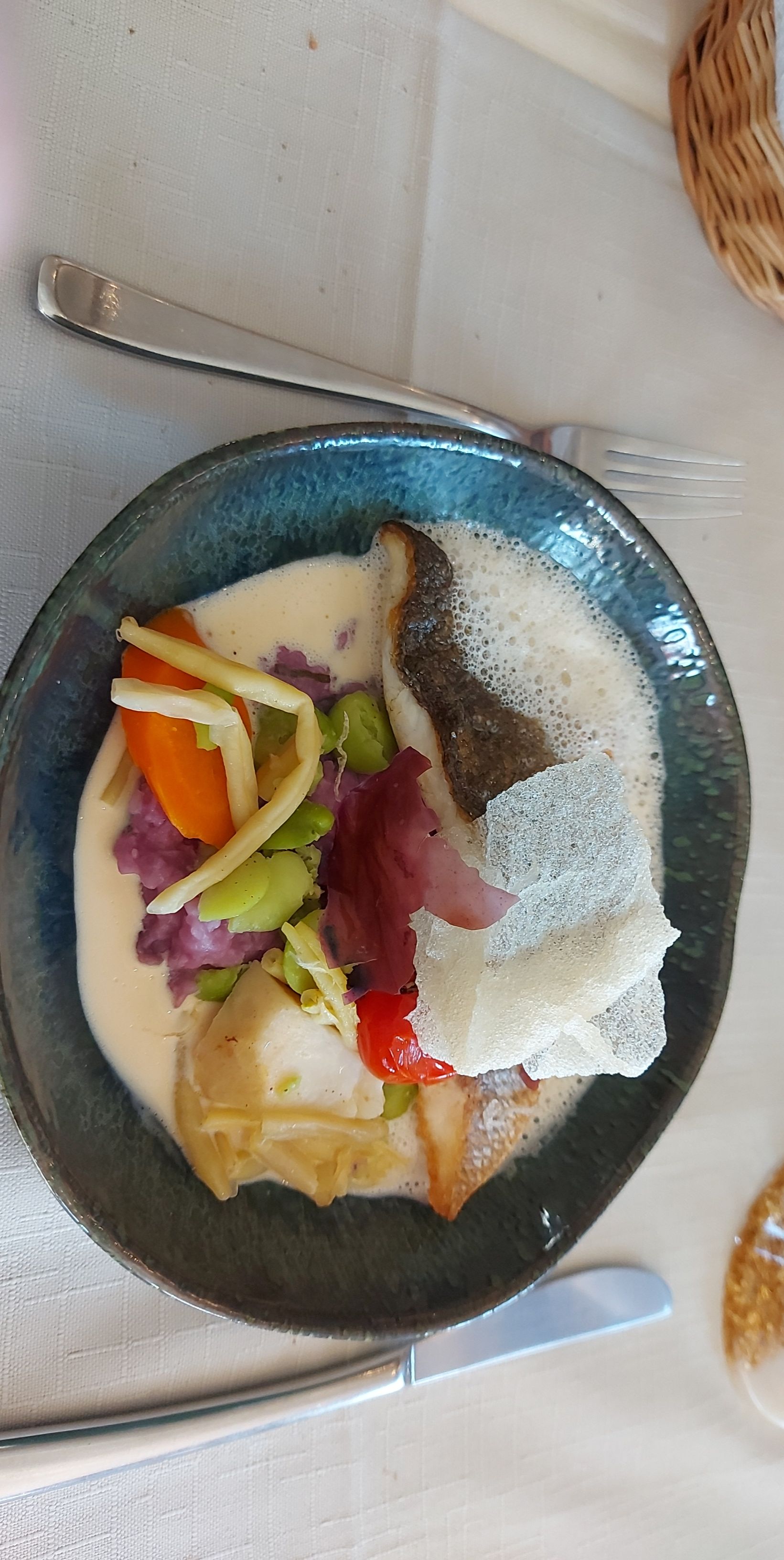 Le restaurant est sympathique et chaleureux, le service est correct et les tables espacées et propres. Les cartes des plats et des vins sont bien fournies, et nous nous sommes orientés vers un menu. Les amuse-bouches n'étaient pas fameux, manque de goût. Les cuissons des poissons étaient parfaites, les plat de manière générale bien assaisonnés, avec quelques idées bizarres (dessert trop sucré par exemple)