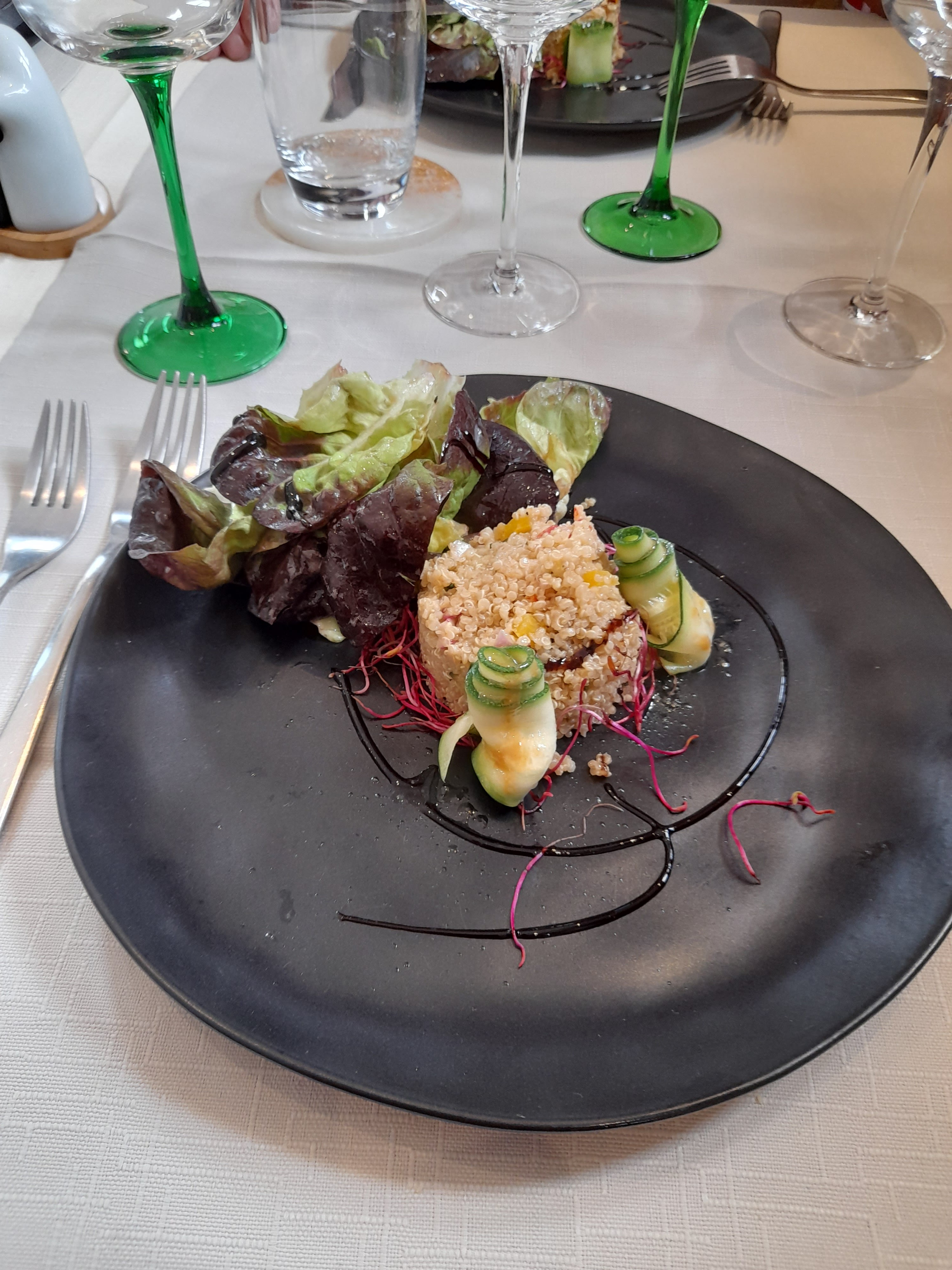 Repas en famille 4 personnes Génial, très belles assiettes, très raffiné. Cuisine moderne et très très bonne Je recommande a 200% Nous reviendrons