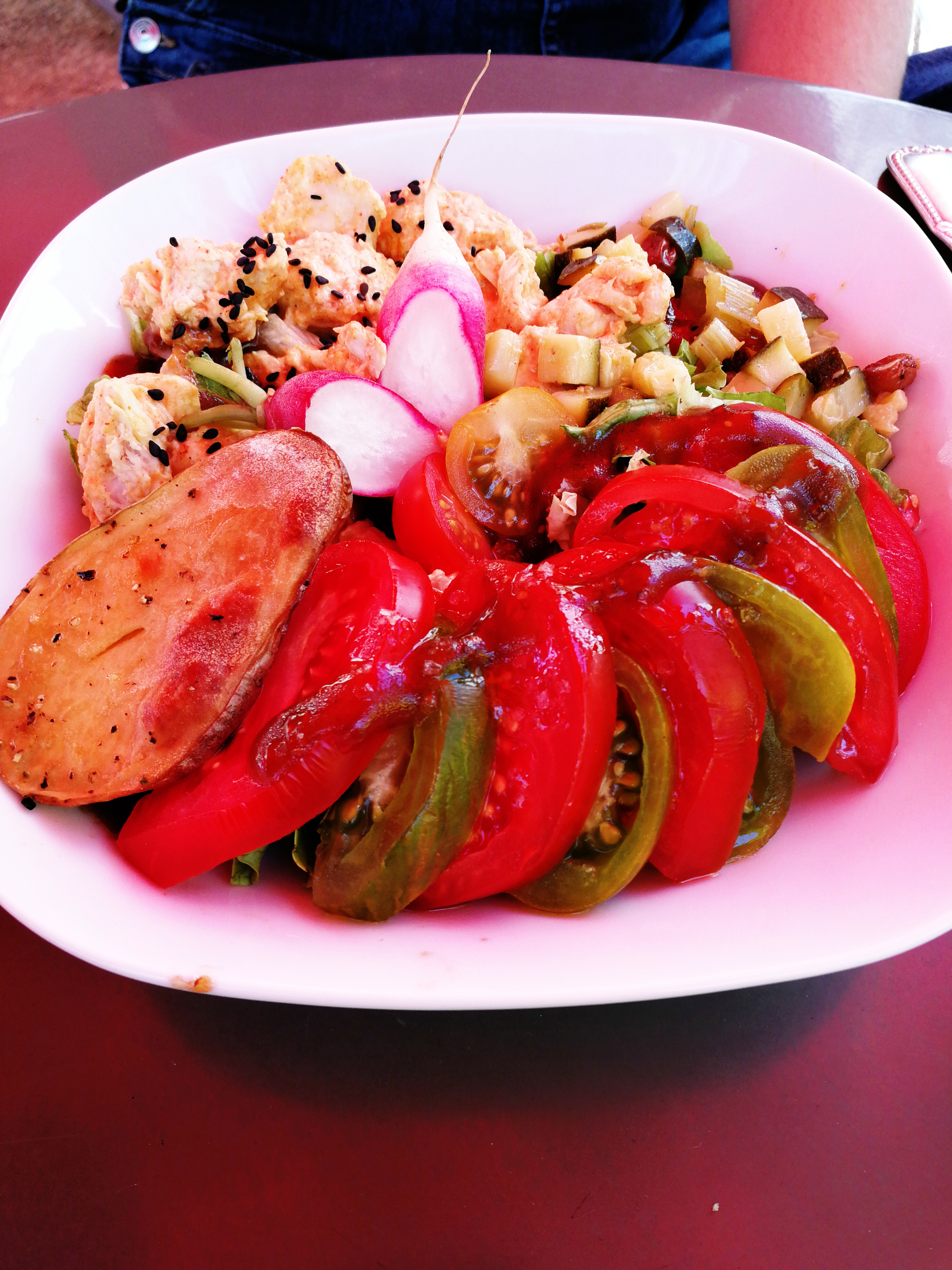 Super repas en terrasse tranquille au soleil au centre ! Assiettes copieuses et superbement décorées ! Très original et savoureux ! Service sympathique et rapide ! Difficile de se garer prévoir un peu de temps avant !