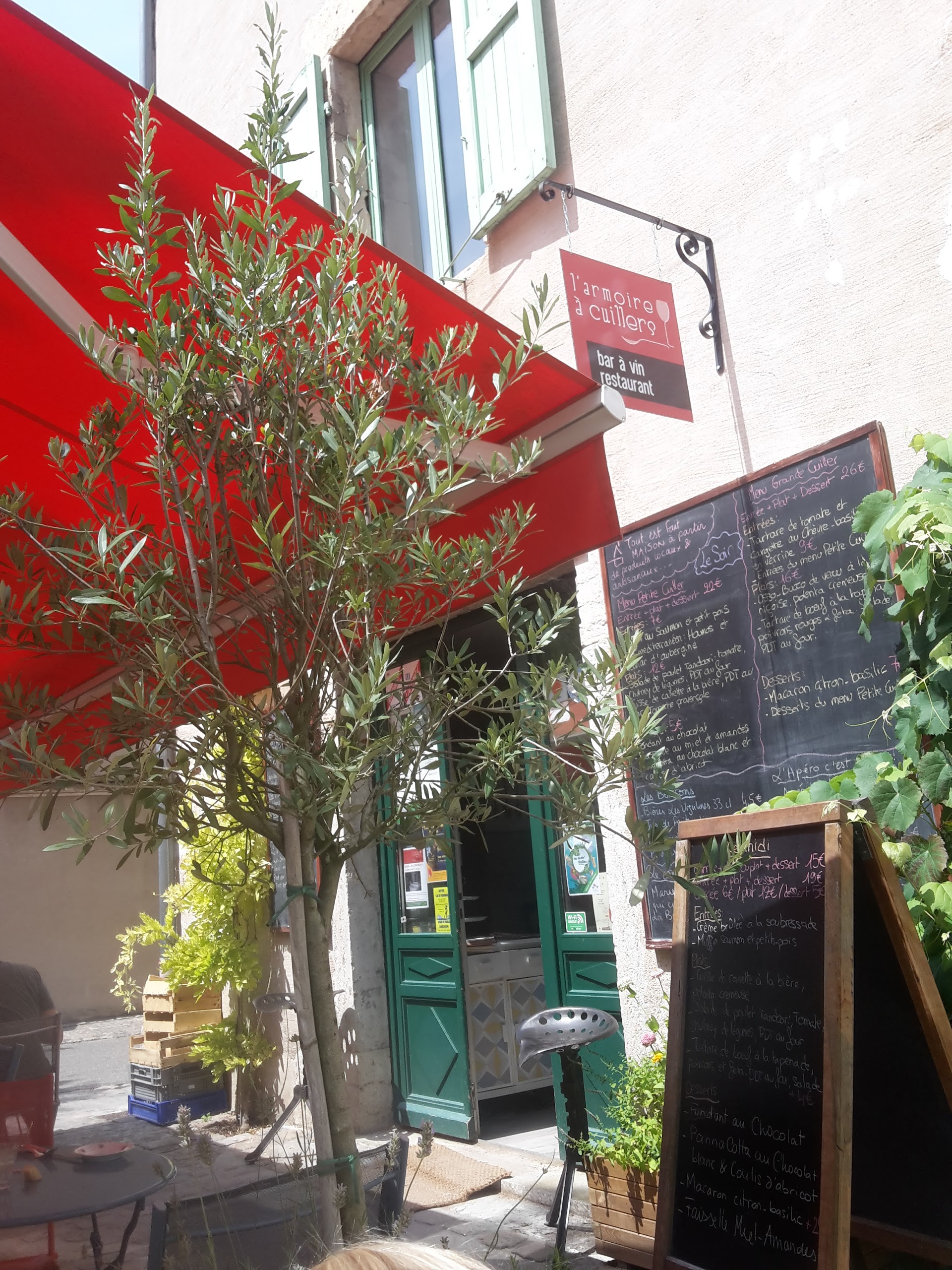 wow wow wow, mais quelle belle découverte! Je mets très très rarement 5 stars....tout est dit mais allons y , je développe comme d'habitude quelle que soit la note d'ailleurs) Tout d'abord ma chérie voulait me faire découvrir cette cité médiévale qu'est Crémieu. En tant que critique gastronomique reconnu sur Google (elle sur Trip Advisor) j'ai de suite cherché un restaurant, et Google m'a proposé ce restaurant en premier. Je ne regarde pas les avis des autres, tellement différent je suis au niveau culinaire (je suis très dur, rigoureux sur chaque détail) De suite la rue perpendiculaire à la terrasse, et jouxtant la cuisine m'a interpellé. Quelle bonne odeur! un délice....ce fut la première surprise que je ne manquai pas de dire à notre hôte (une charmante serveuse), avec la petite touche de plaisanterie ( et si c'était le voisin qui cuisinait aussi bien !) Bref on y va : tables colorées comme chez moi, j'adore la couleur et c'est rare de trouver une terrasse aussi Melting Pot croyez moi. J'ai l'impression du coup d'être comme chez moi tout en étant dépaysé dans cette cité qui me tend les bras!! Apéritif ? Oui comme tout le monde...sauf que L'Armoire à Cuillers propose ...Rinquinquin ...oui oui , le fameux ou peu connu apéritif à la pèche...si bon que je ne pus m’empêcher d'en commander un second;) Ensuite quelle ne fut ne pas la surprise de découvrir nos plats ( nous avions pris le menu à 27 euros du we, ...cf mes photos) , tout était divinement cuisiné....dans des assiettes de grand mère ;) oui presque des myosotis , d'ailleurs j'ai demandé....oui oui ... les filles les gérantes ne les mettent que 3 mn au lave vaisselle pour s 'assurer que le décor ne s'en aille pas :-).... Allez pour terminer car je pourrais en parler des heures des plats, pourquoi ce nom l'Armoire à Cuillers ? d'autant que sur le mur extérieur il y a juste une fourchette et un couteau. Demandez leurs aux filles, elles vous diront :1) où l'armoire fut....2) un indice Boris Vian ... Bref je recommande définitivement ce restaurant vous l'aurez compris