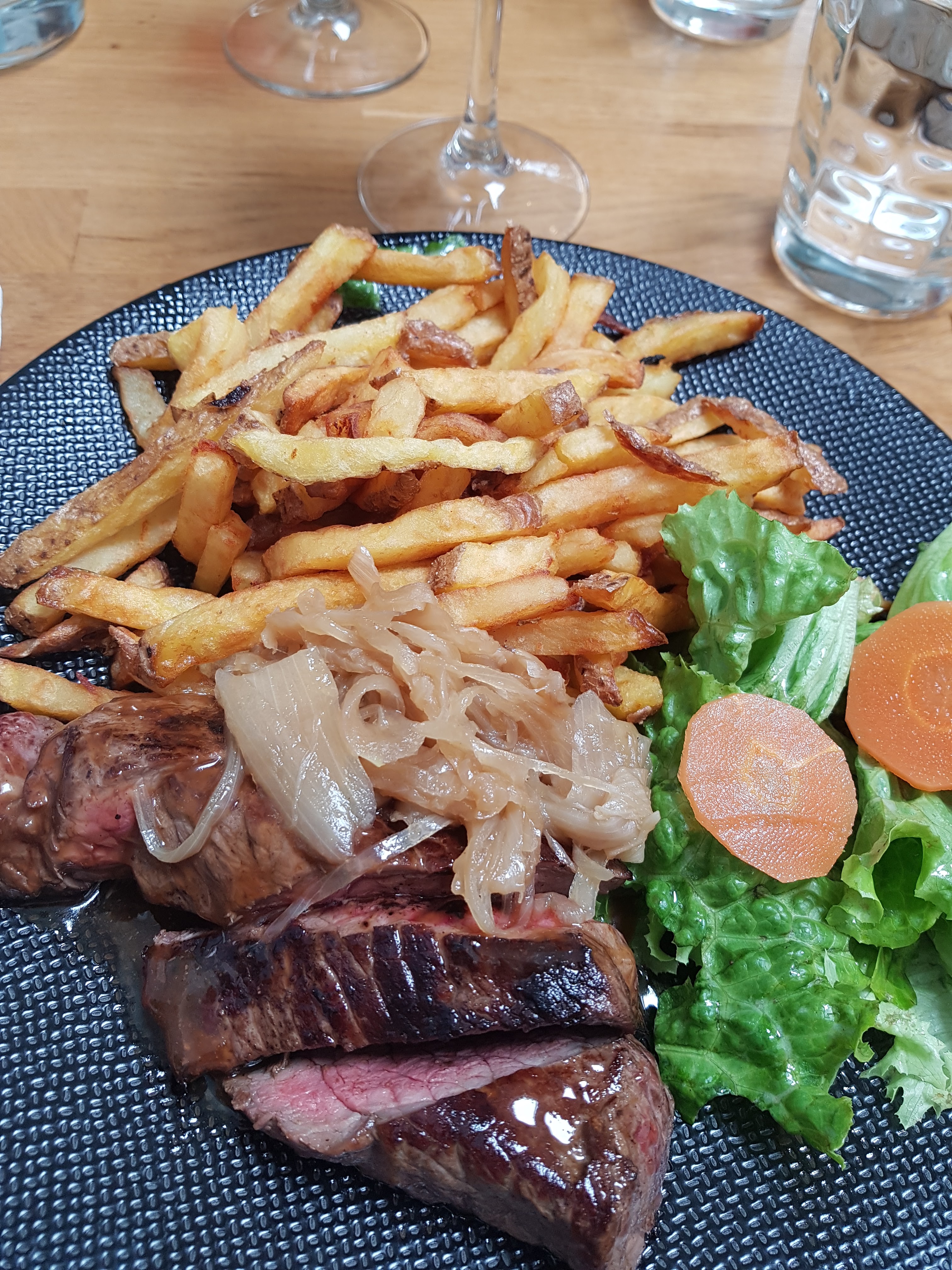 Bon accueil mais 25 euros pour un pavé de 150 gr de viande rouge et des frites.... Une arnaque! Viande de qualité moyenne de surcroît. 8 euros pour du fromage qualité super U Affinage moyen... Bref je ne recommande pas Il y a beaucoup mieux pour le meme prix Perso je n y retournerai plus