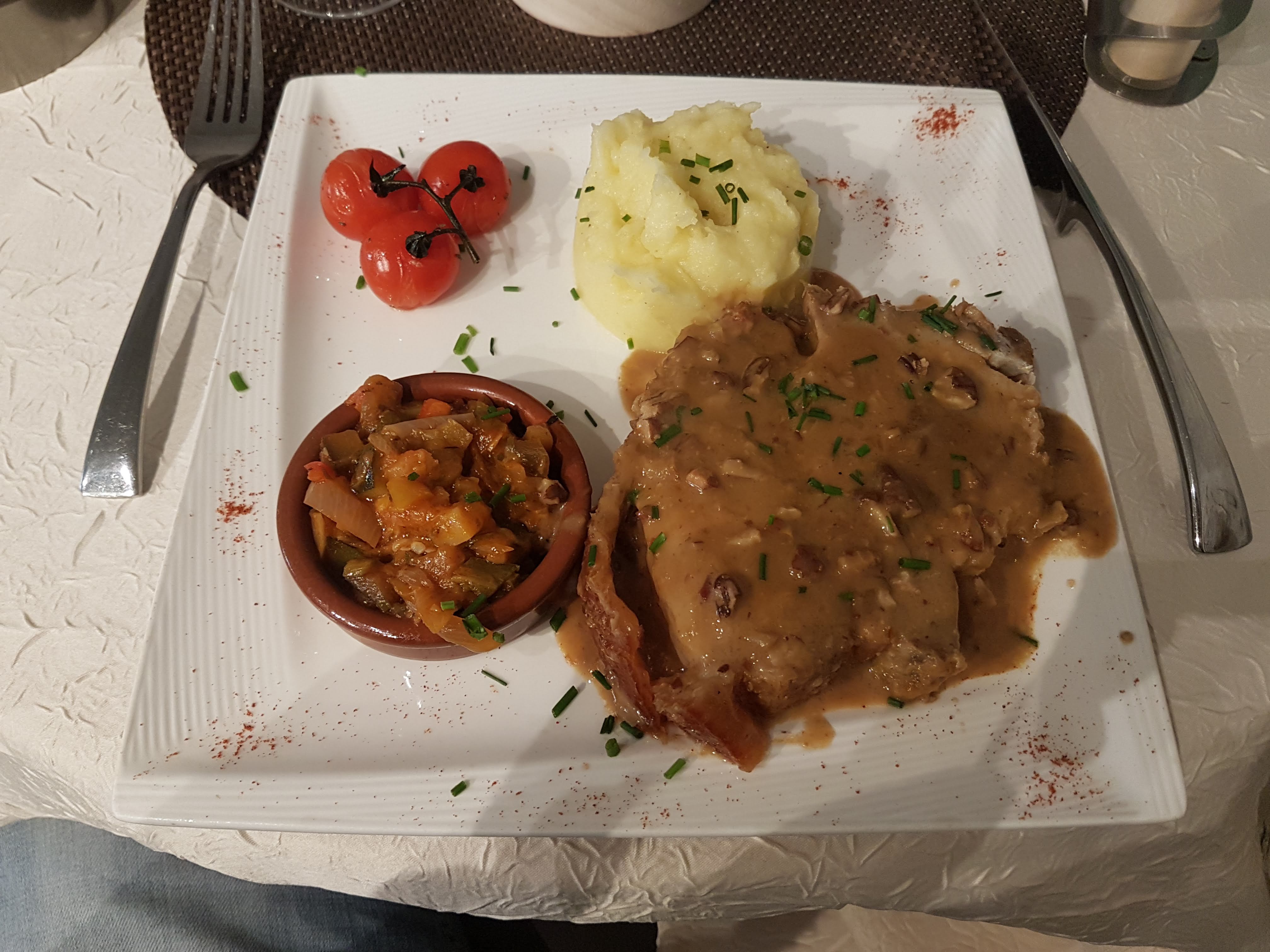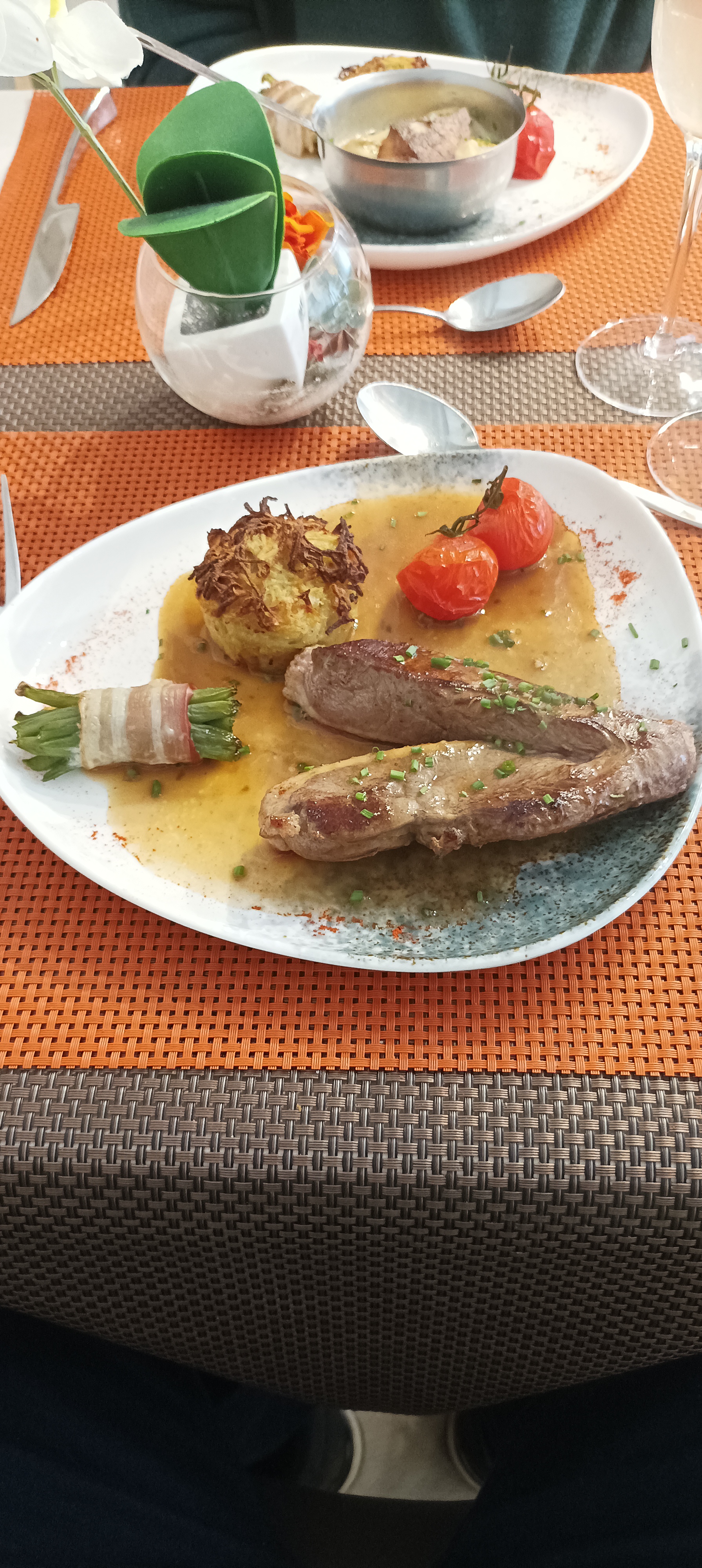 Première fois dans ce restaurant trouvé sur internet Très bon accueil repas délicieux avec des petites attentions en plus du menu Superbe cadre y retournerons !!/